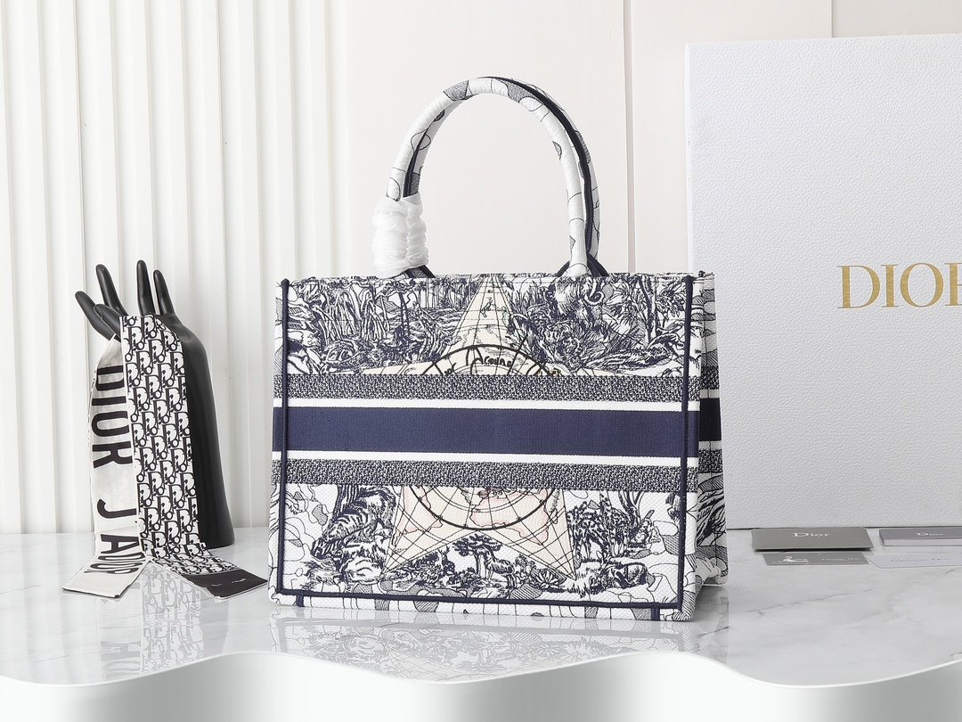 原单 Dior Book Tote 托特 五角星中36cm 这款 book tote手袋由女装创意总监玛丽亚·嘉茜娅·蔻丽(maria grazia chiuri)设计,是体现美学的主打产品。白色款式,通体饰以多色butterfly around the world图案刺绣,彰显该系列的经典之美,点缀以lenvol des papillons dévoile nos désirs aux étoiles字样,可收纳各种日常用品。中号款式,正面饰以 cistian paris标志,彰显的精湛工艺,可手提或肩背。 型号:0175,尺寸:36 x 27.5×16.8 cm,