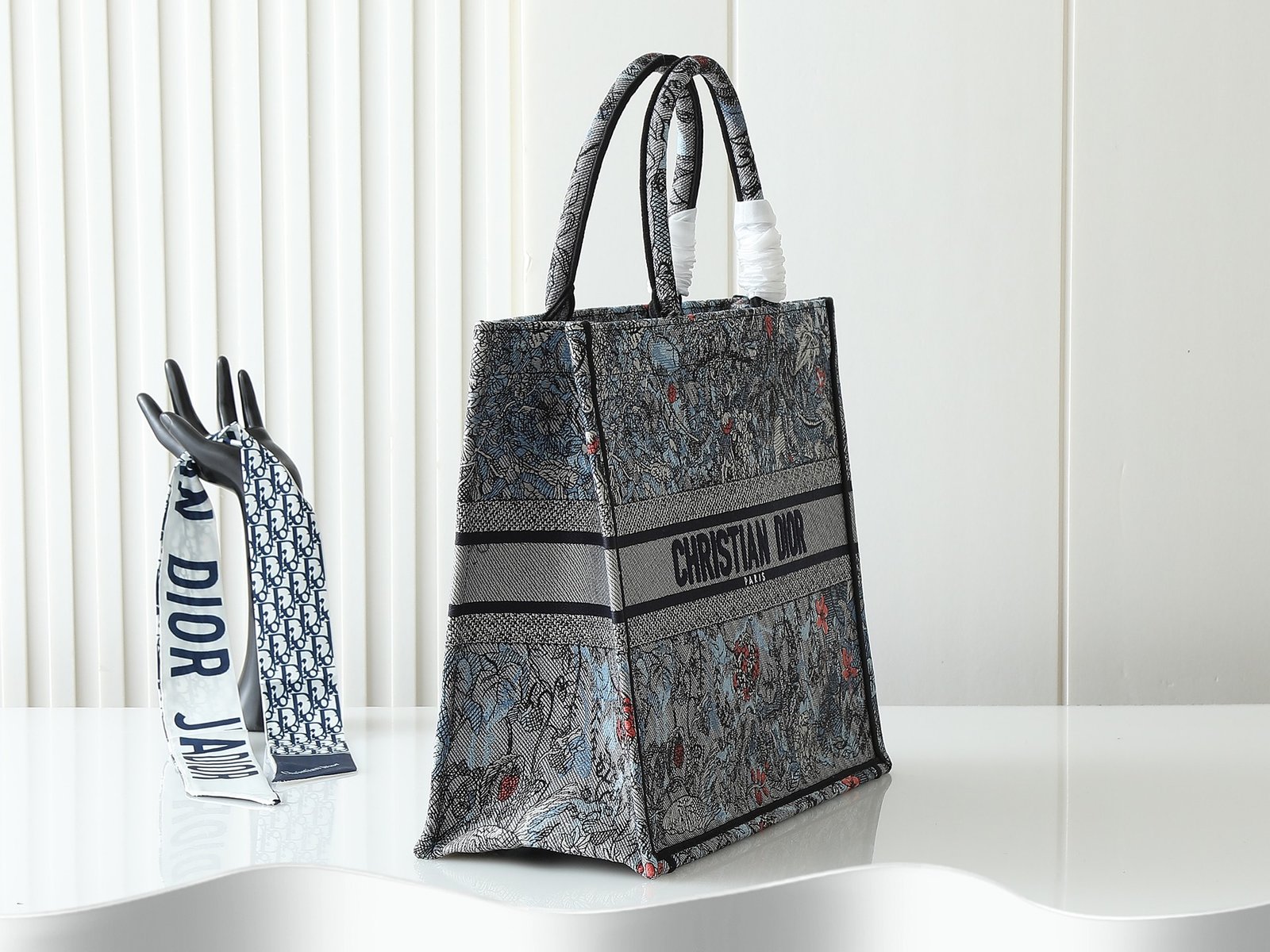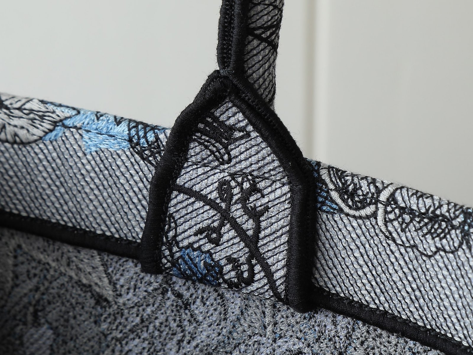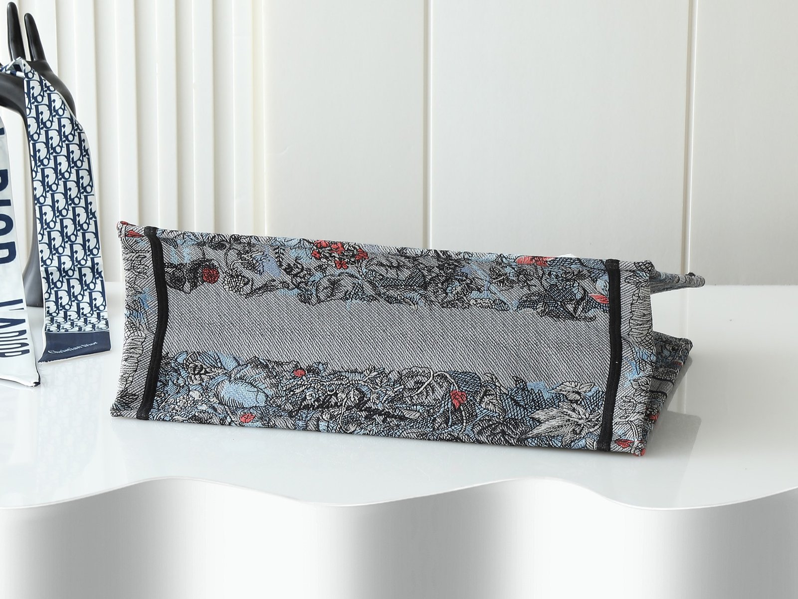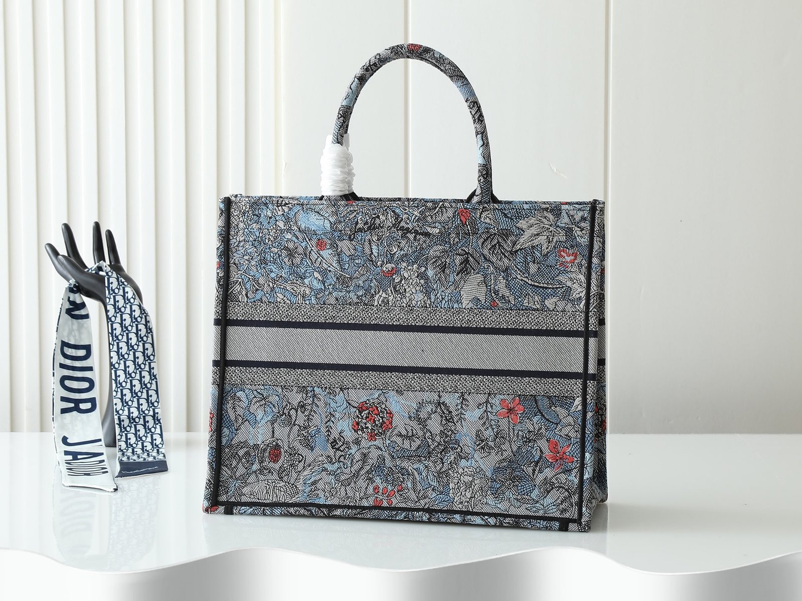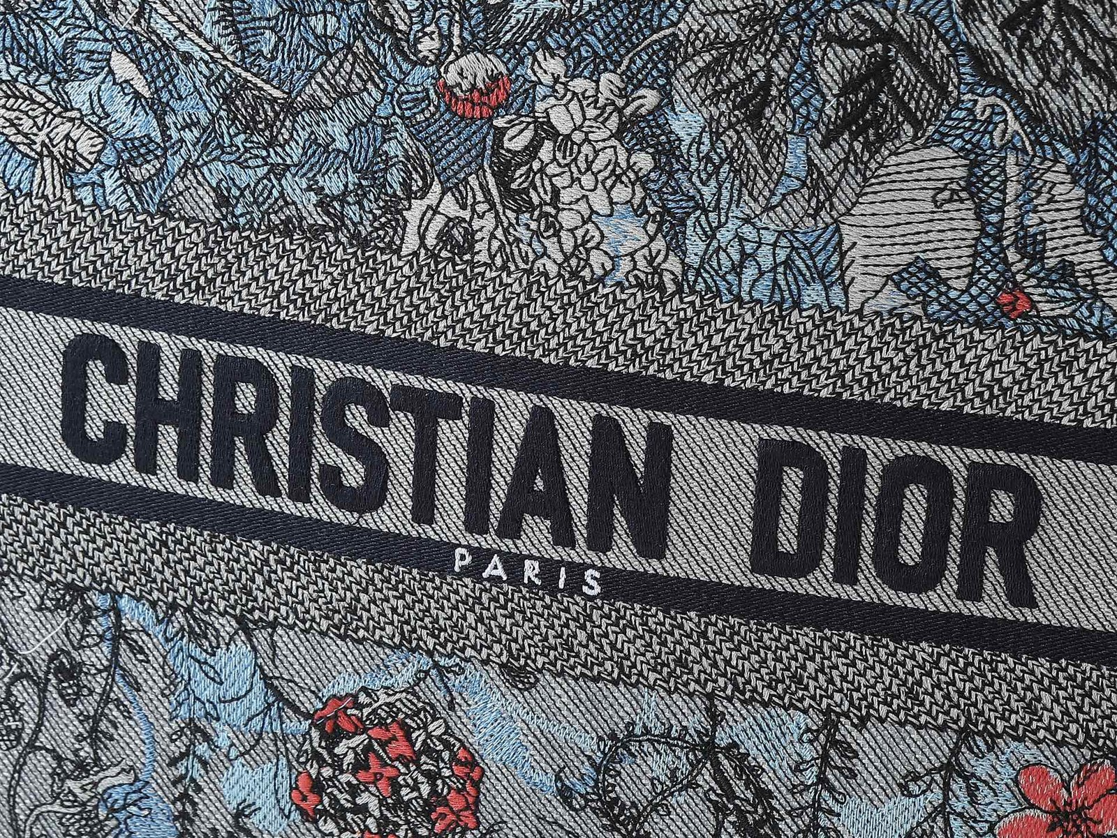 原单 Dior Book Tote 托特 深蓝D大42cm 这款 book tote手袋由女装创意总监玛丽亚·嘉茜娅·蔻丽(maria grazia chiuri)设计,是体现美学的主打产品。白色款式,通体饰以多色butterfly around the world图案刺绣,彰显该系列的经典之美,点缀以lenvol des papillons dévoile nos désirs aux étoiles字样,可收纳各种日常用品。中号款式,正面饰以 cistian paris标志,彰显的精湛工艺,可手提或肩背。 型号:0175,尺寸:42 x 35×18.5 cm,