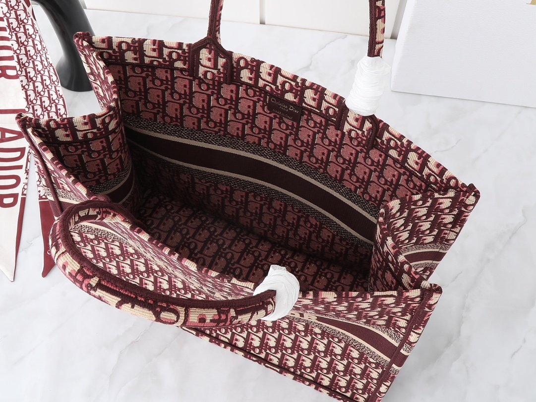 原单 Dior Book Tote 托特 红色大42cm 这款 book tote手袋由女装创意总监玛丽亚·嘉茜娅·蔻丽(maria grazia chiuri)设计,是体现美学的主打产品。白色款式,通体饰以多色butterfly around the world图案刺绣,彰显该系列的经典之美,点缀以lenvol des papillons dévoile nos désirs aux étoiles字样,可收纳各种日常用品。中号款式,正面饰以 cistian paris标志,彰显的精湛工艺,可手提或肩背。 型号:0175,尺寸:42 x 35×18.5 cm