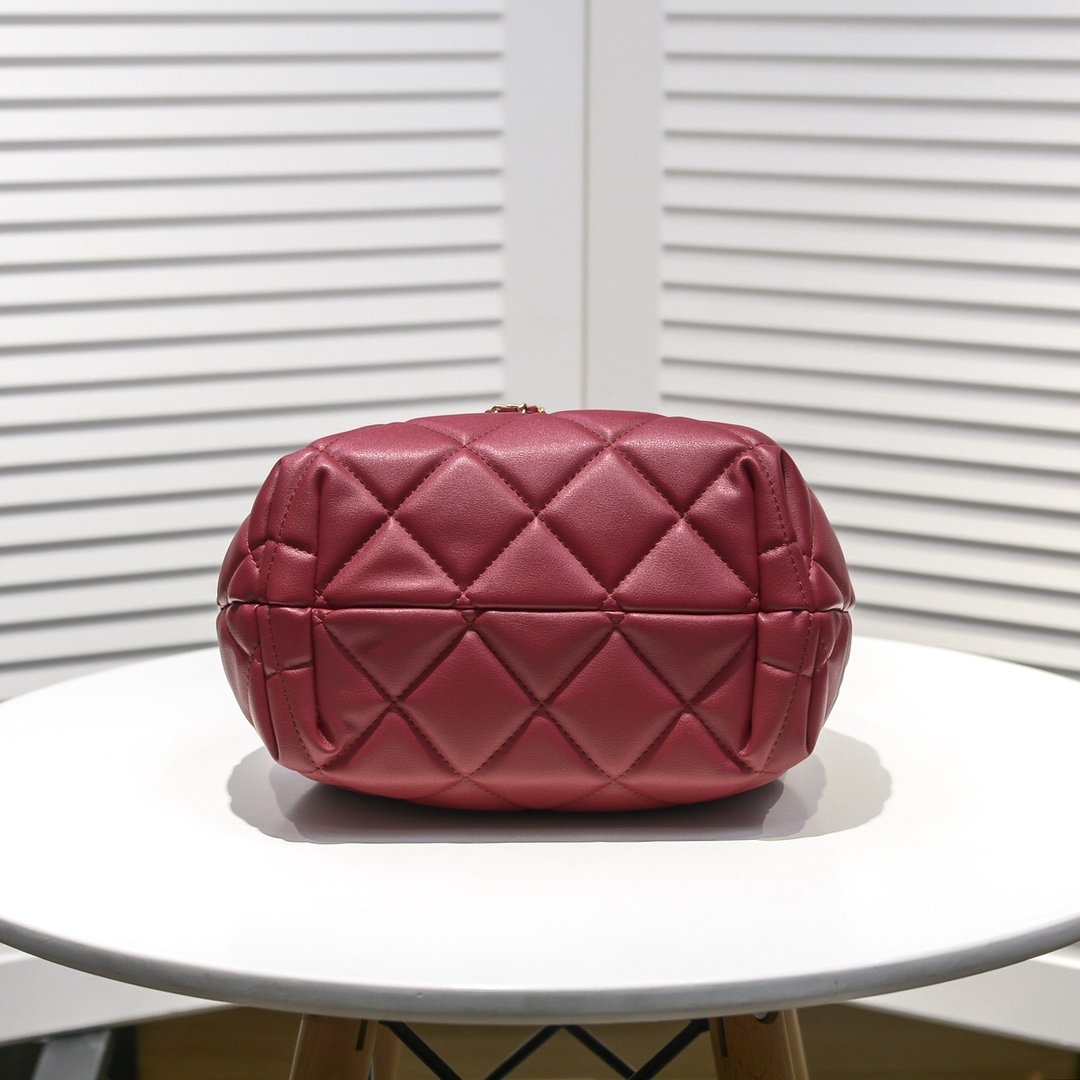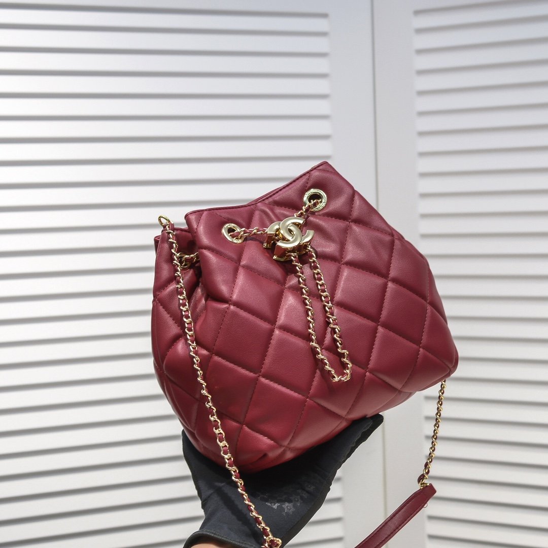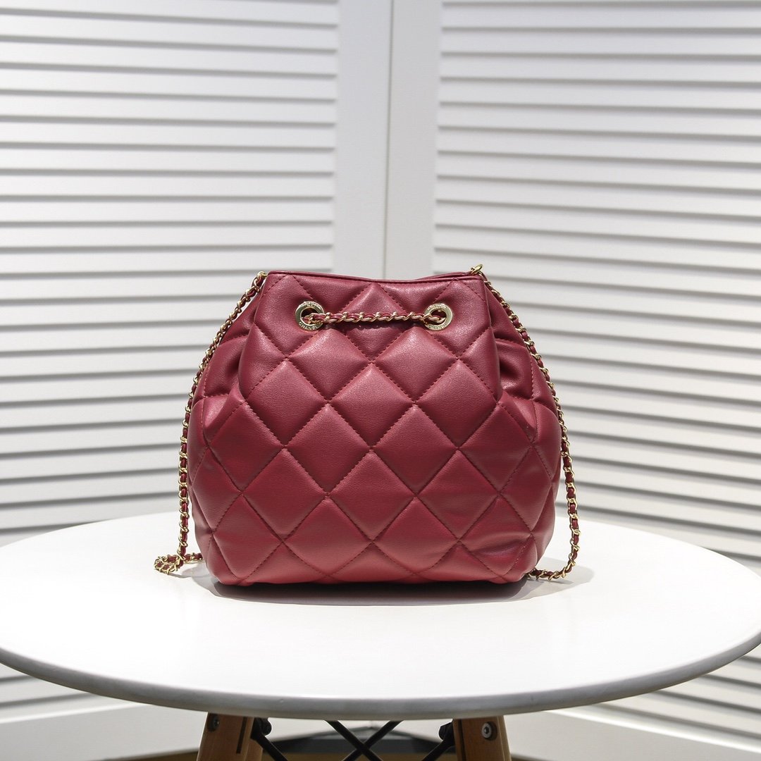 CHANEL Double C chain drawstring mini bucket bag leather series with gold hardware: large quilted design, highly aesthetic, reflecting Chanel’s design style in recent years. The cowhide leather is soft and comfortable, making it more suitable for mini-sized bags. The design is perfect, clean, and stylish, a must-have drawstring bag. Available in black in various sizes. Model number: 1801# Large size: 21*23*15cm