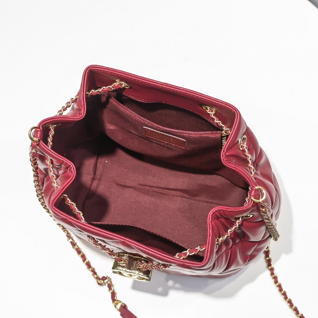 CHANEL Double C Chain Rope Burgundy Mini Bucket Bag