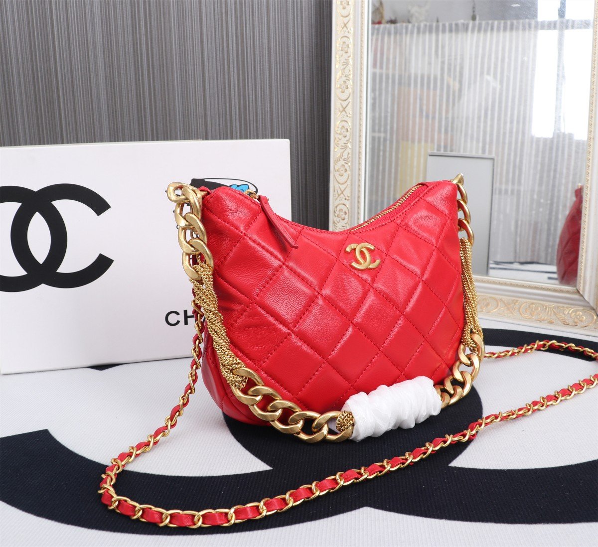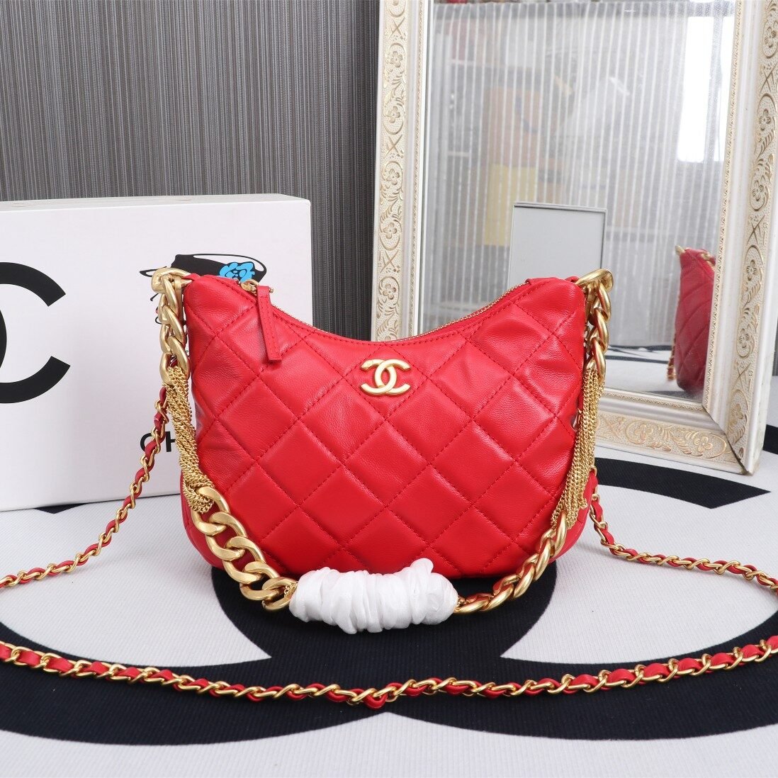 This is just too cute!! CHANEL 22 23A Small Hobo Sheepskin Shoulder Bag with Tassel Hardware. This season’s bags… there are really very few that catch my eye!! But this small Hobo is pretty nice, quite versatile, suitable for both sweet and cool styles~ It can fit a phone, but the bag is relatively slim, so I personally wouldn’t recommend stuffing it too full as it will become puffy. Comes with a detachable leather chain strap for crossbody use, making it more practical. Size: 17.5 x 24 x 6 cm. Style number: 8842.