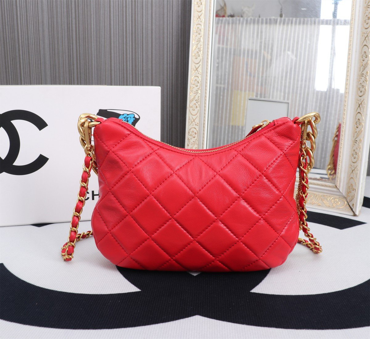 CHANEL Small Hobo Lambskin Shoulder Bag