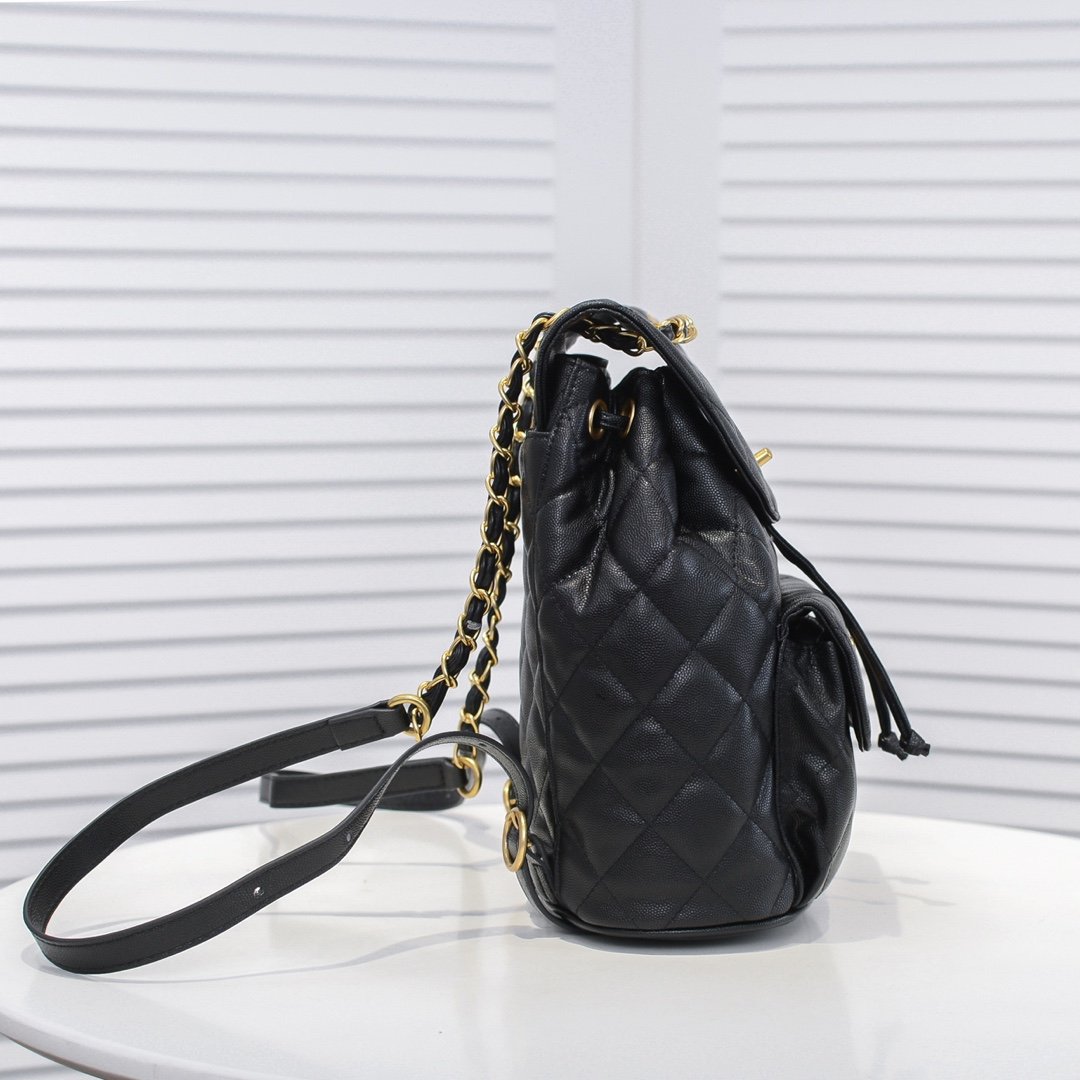 Chanel Early Spring New Black Calfskin Duma Backpack Super Durable Litchi-Textured Calfskin Super Cute Strongly Recommended Size: 21.5x24x12cm Model Number: 9051