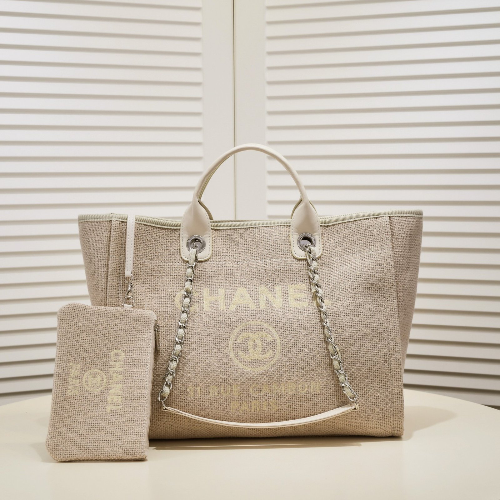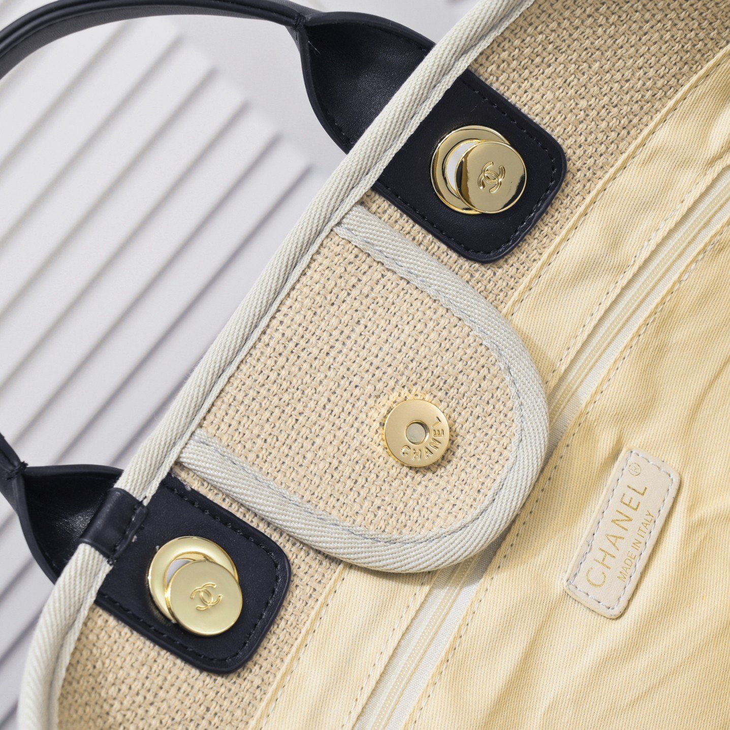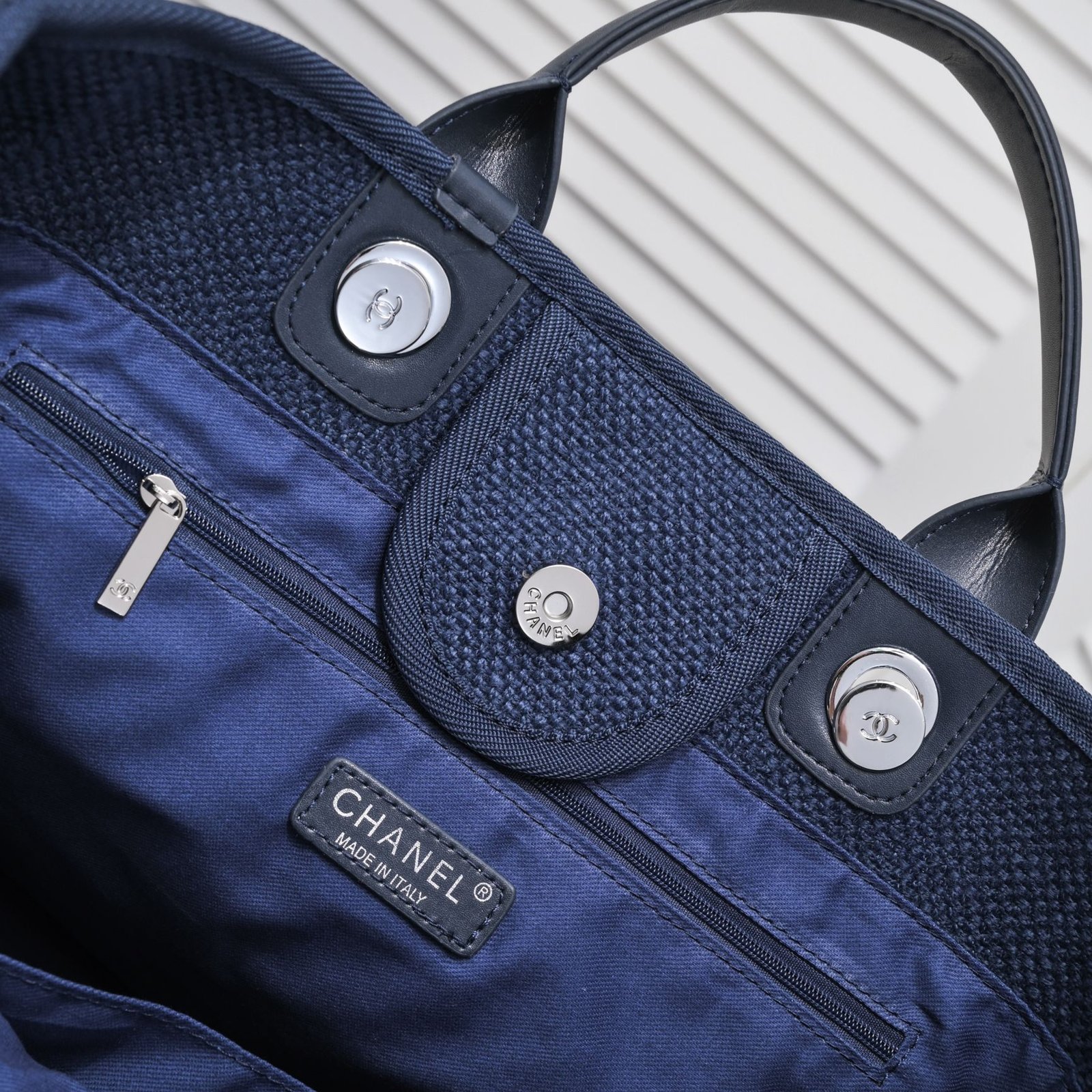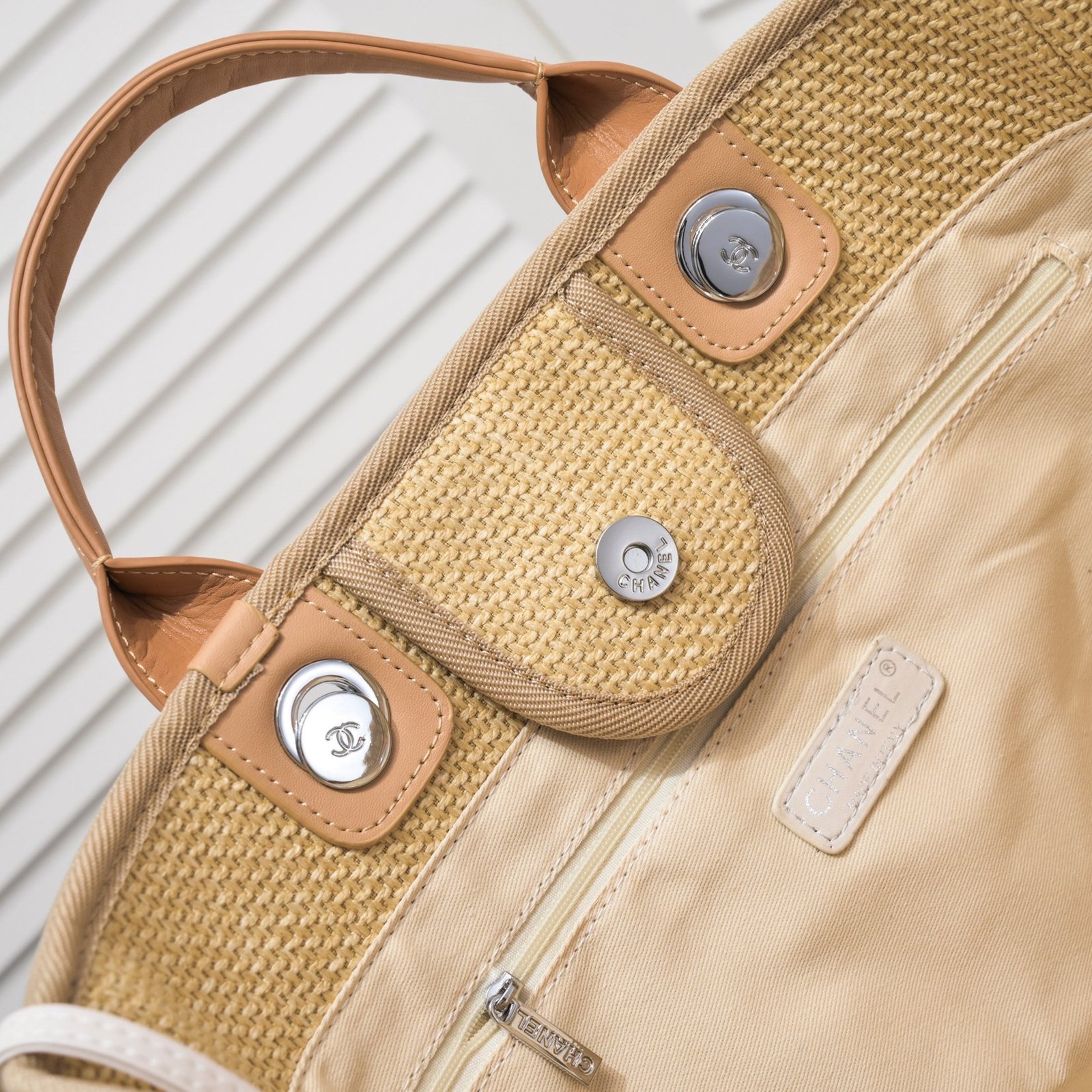 Chanel 早春新款购物袋沙滩包🏖️ 想要休闲耐装且百搭,必选沙滩包,可拎可背 搭配小包买一送一的节奏[机智]妈咪包简易的搭扣设计 .任何细节对版布料,对版刺绣LOGO,品质超赞!此布包成为专柜爆款! 人性化设计背起来不勒 十分有质感 大号尺寸:39*32*18cm 款号:67178-6