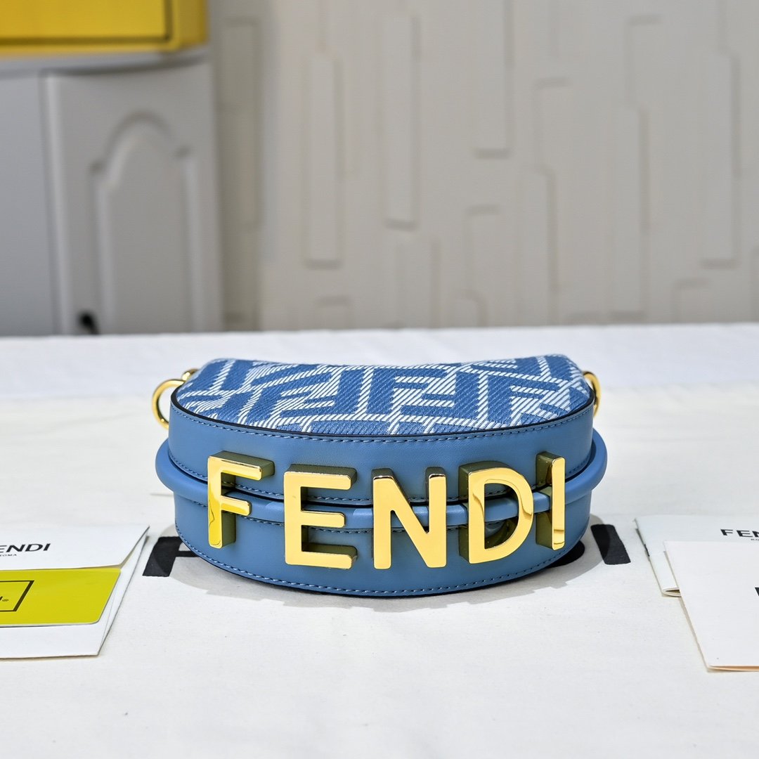 FENDI 芬迪 praphy腋下包,以月牙造型为特色,把经典金属大Logo[FEND1]装饰在包包底部,包包的轮廓很贴切身体的线条,背在腋下的时候时尚感满满,简直就是行走的种草机! 迷你 尺寸 16.5x14x5