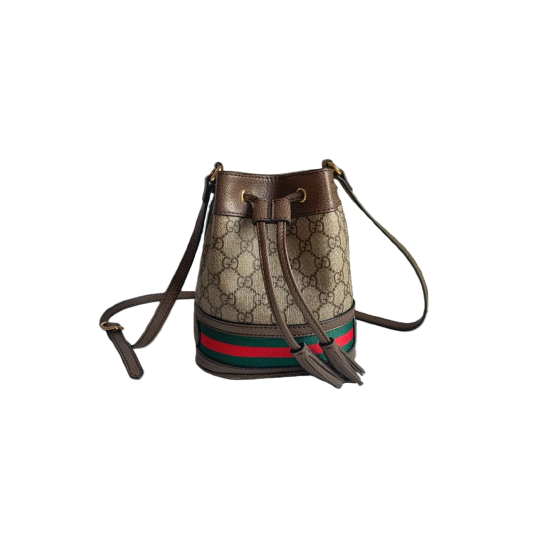 GUCCI Model: 550620 Coffee Size: 19*16.5*10cm Ophidia Family Mini Bucket Bag GG high-quality synthetic canvas material Red and green webbing Small size, large capacity Adjustable shoulder strap for crossbody or shoulder