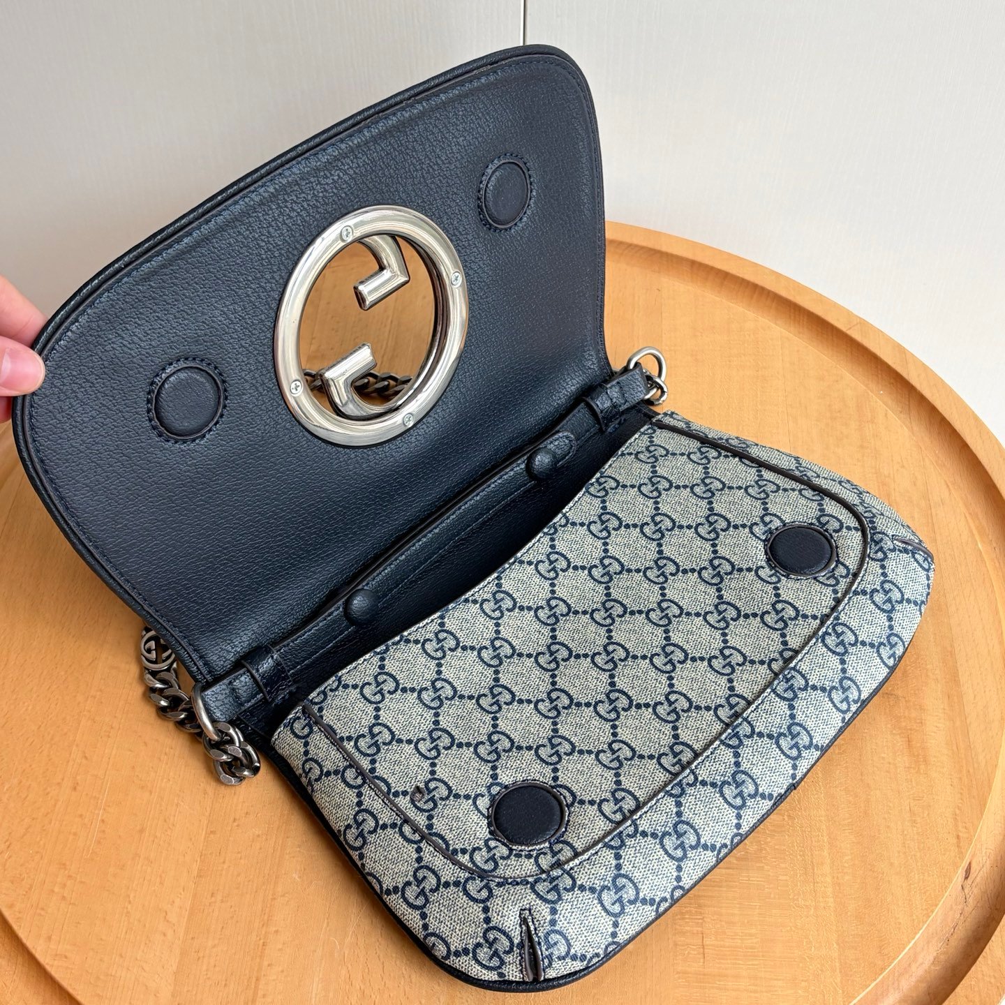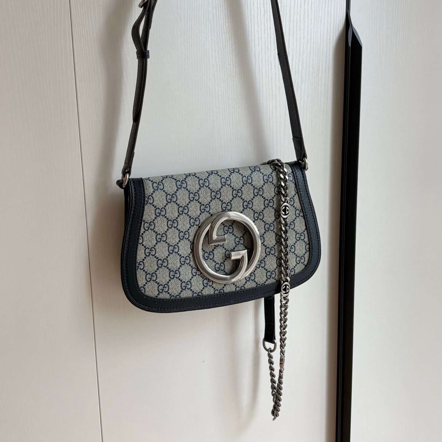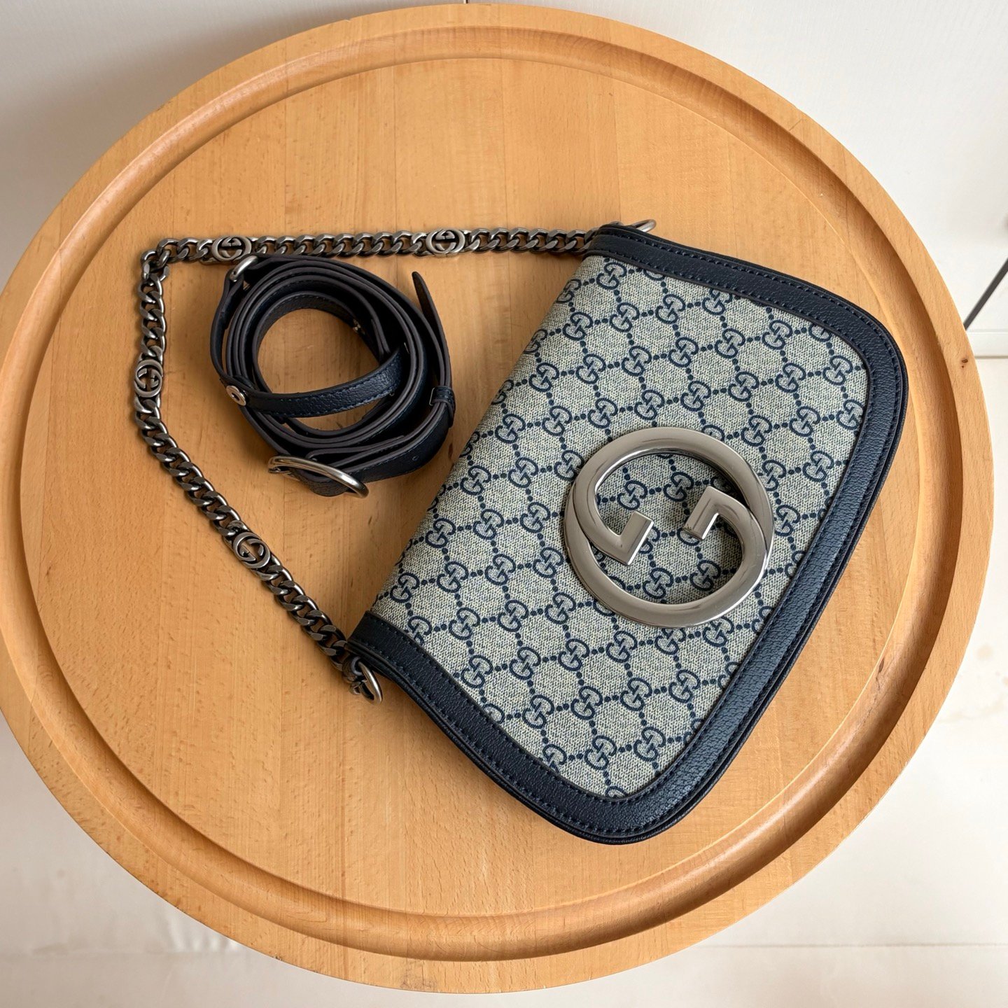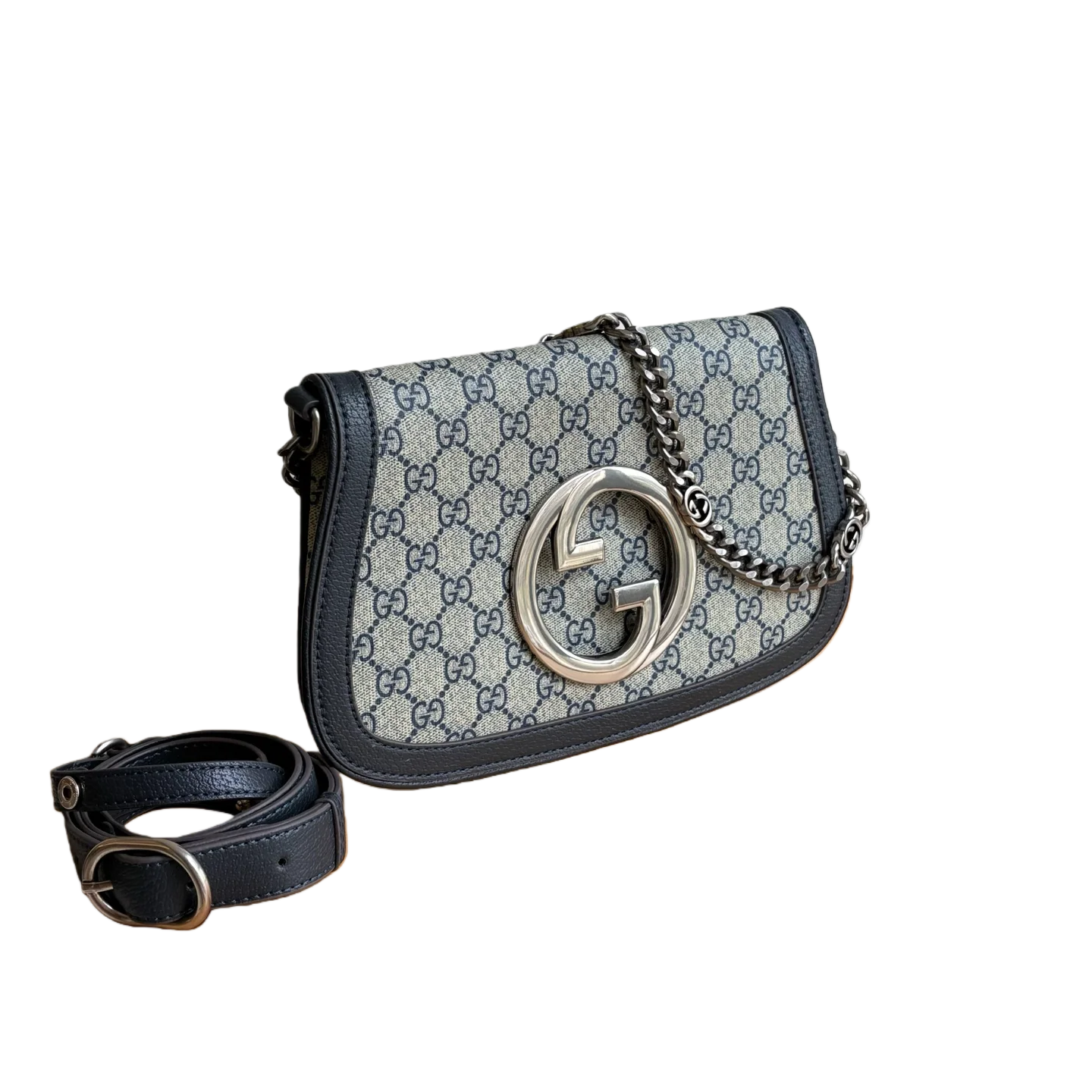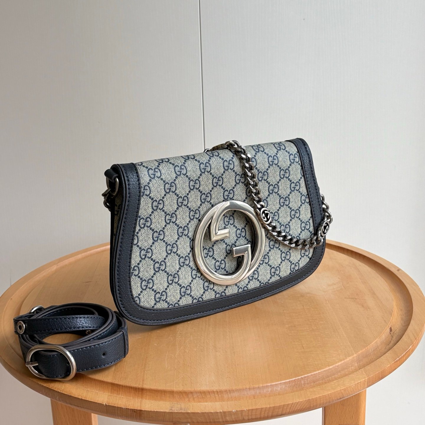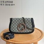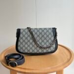 Style number: 699268 Blue/Silver Size: 28/16/4cm Blondie series shoulder bag Canvas Vintage elements meet collectible details, paying tribute to the charming fashion ambiance of the “Love March” fashion show. This shoulder bag features GG Supreme canvas paired with a delicate chain strap design, exuding a timeless and elegant aura. The rounded structure, with its refreshed style, honors the extraordinary charm of this series, while the interlaced initials of the historic Guccio Gucci name elevate the overall sophistication of the piece.