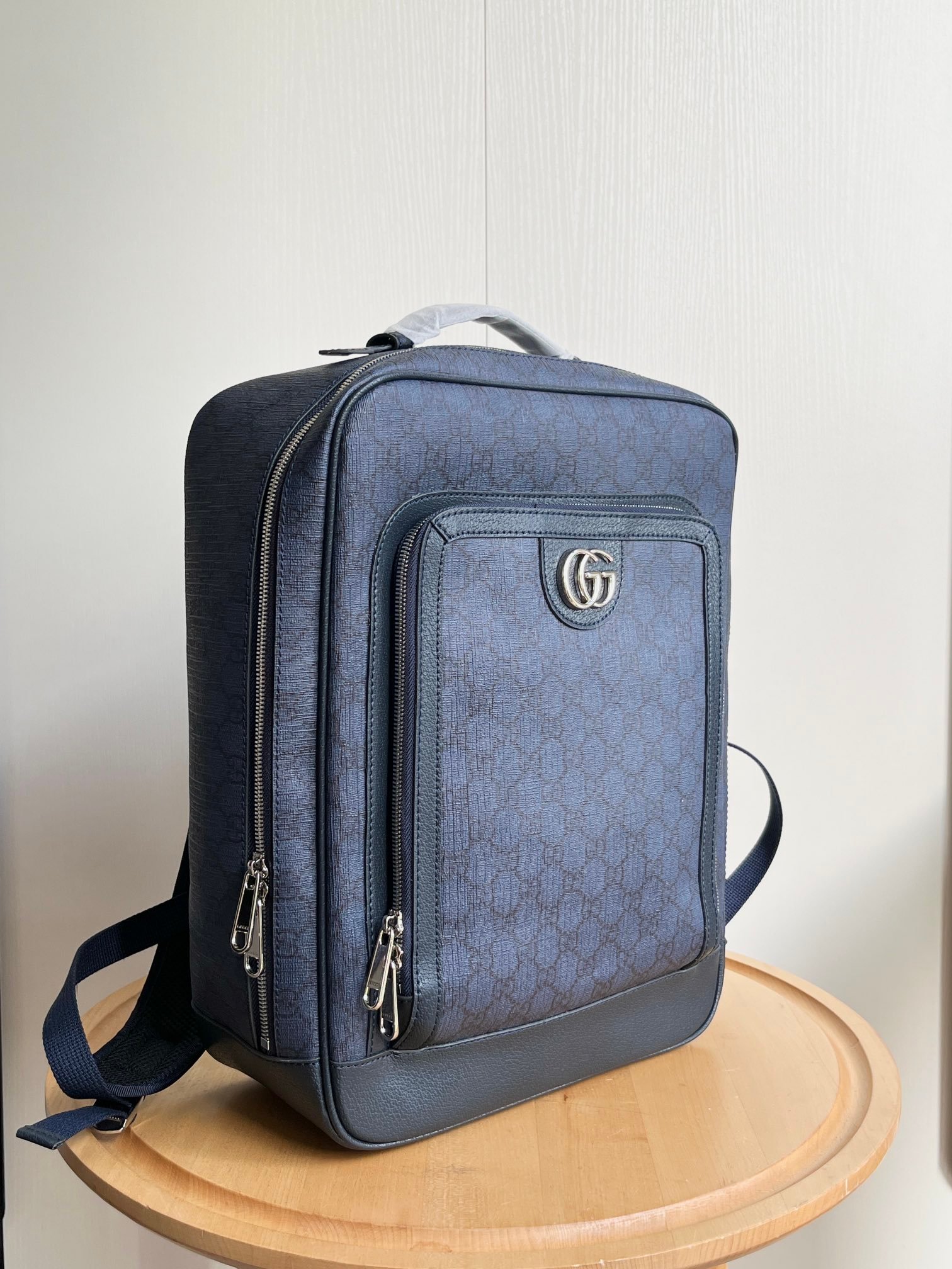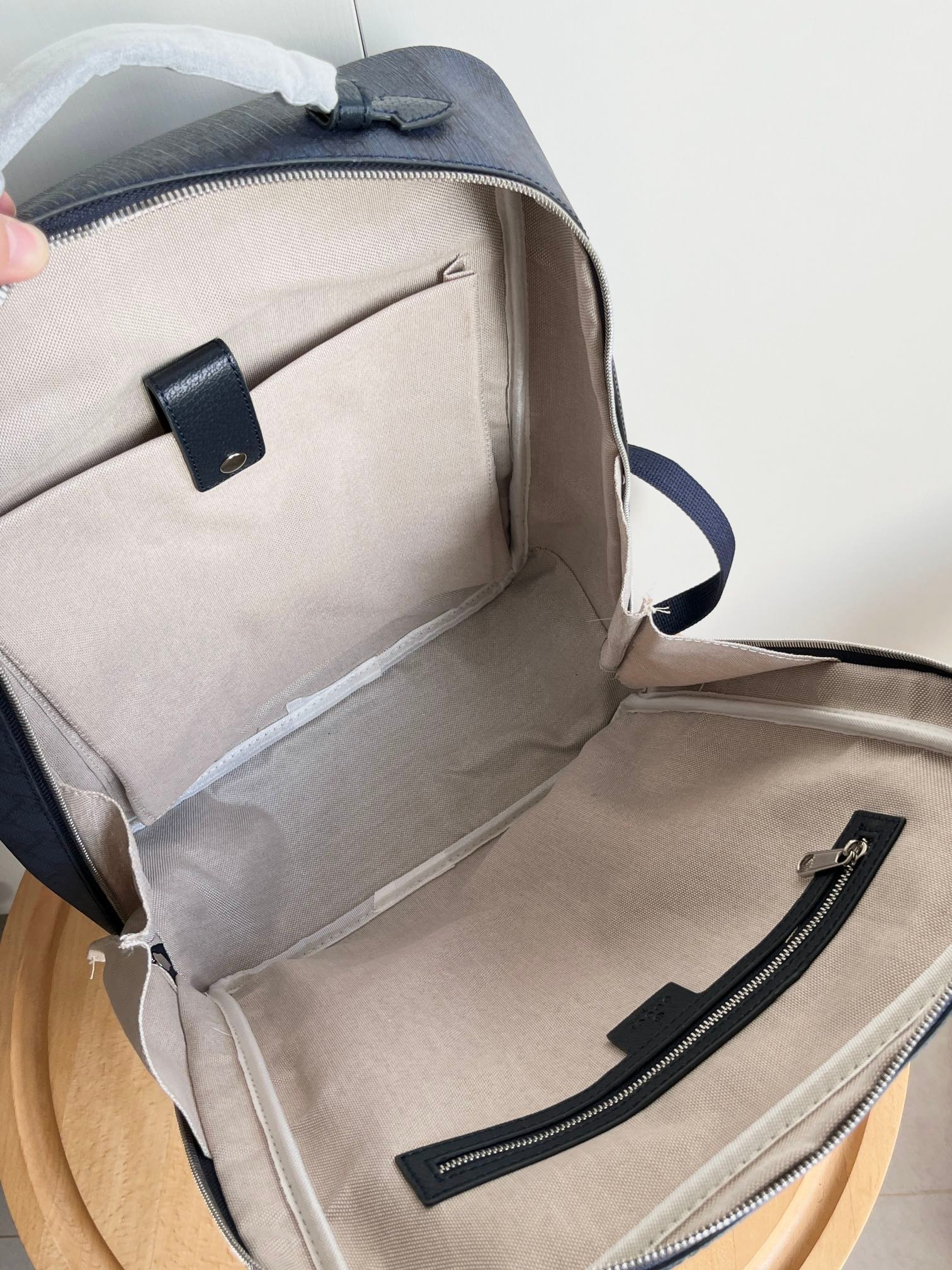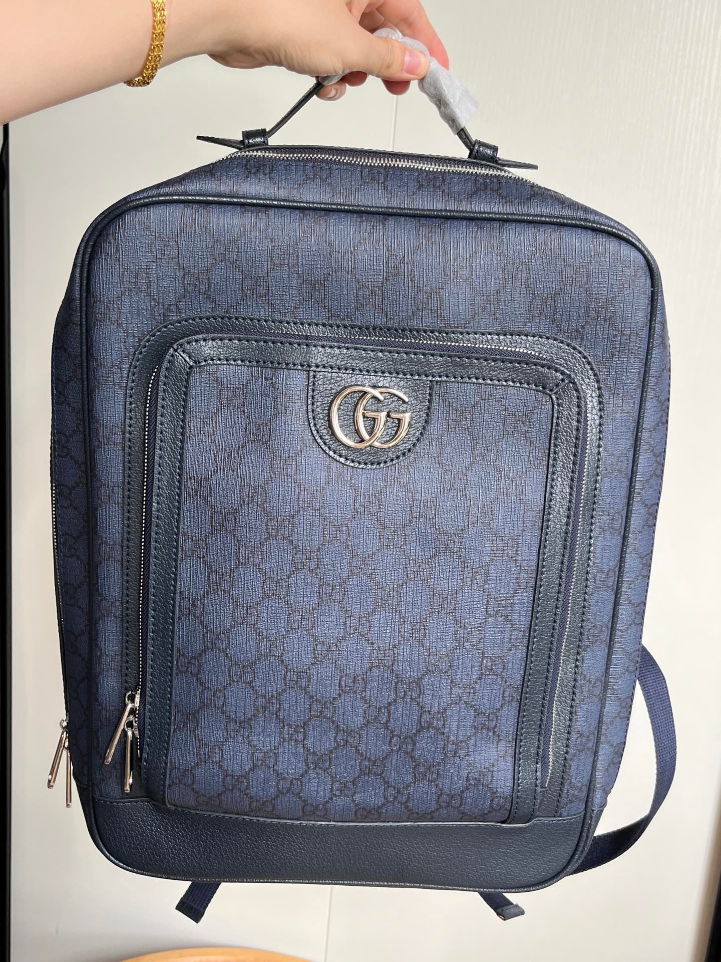 Model: 745718 Size: 30x40x14cm Backpacks have always been an indispensable part of the G house world, available in various shapes and sizes for different preferences. As a member of the ever-expanding Ophidia series, it features textured leather trim. It is adorned with inlaid red and green web stripes, a finely crafted palladium-tone Double G hardware, and a front pocket. Interior: padded laptop compartment and a zip pocket; Exterior: front zip pocket, handle (3 cm high)