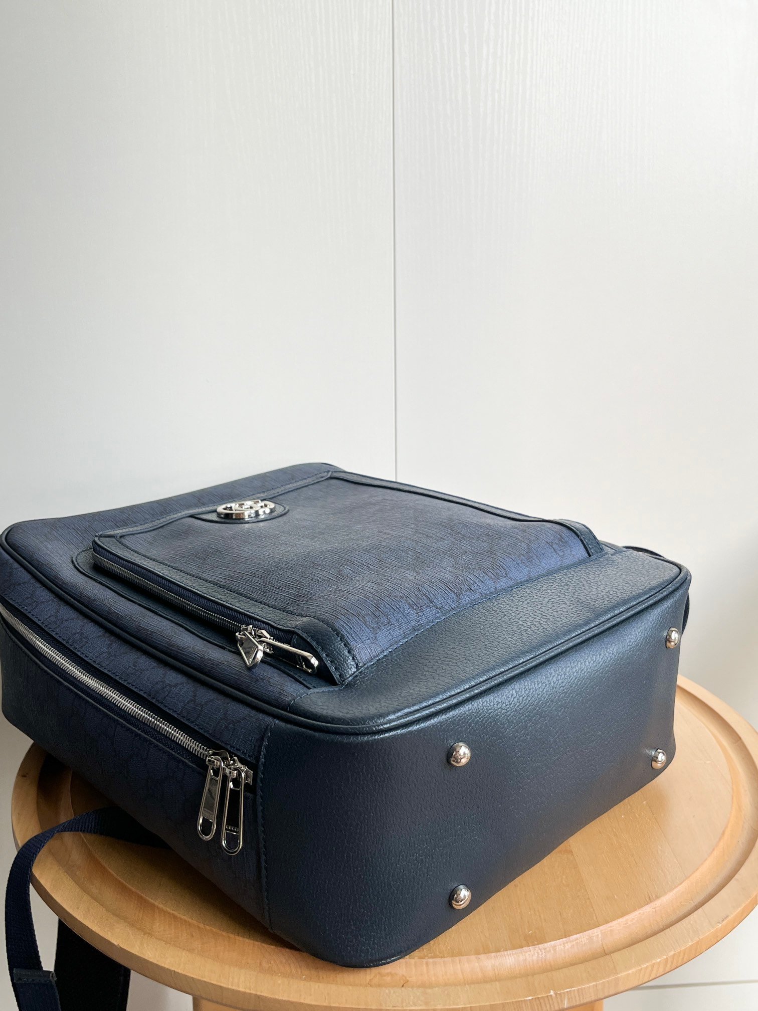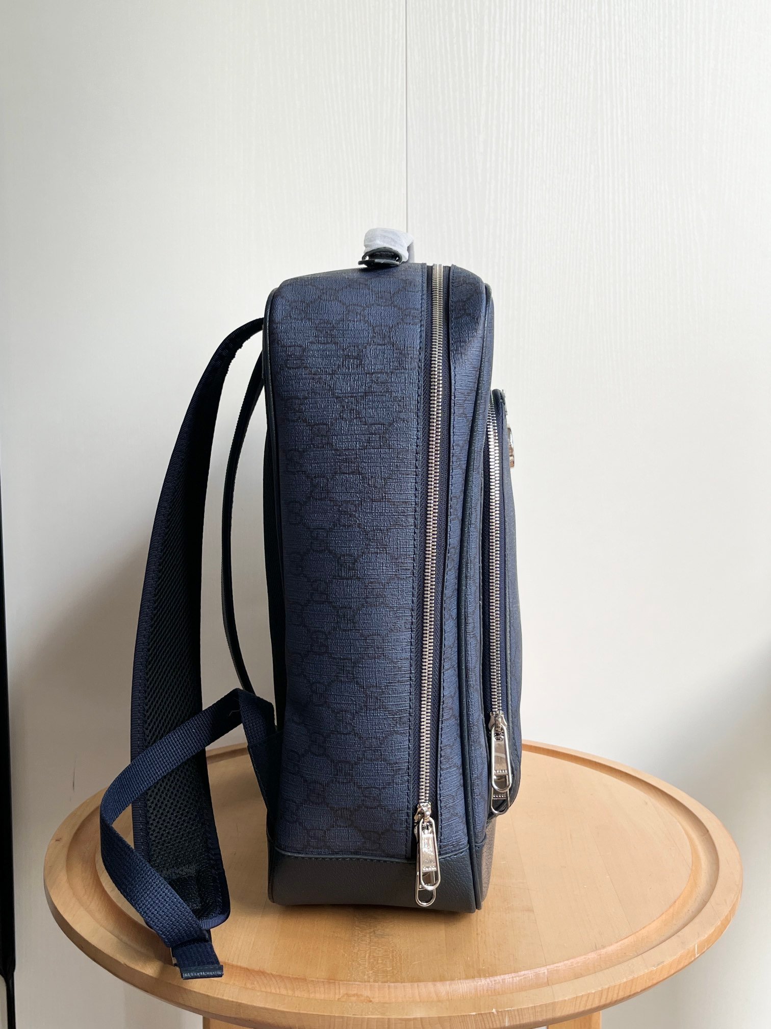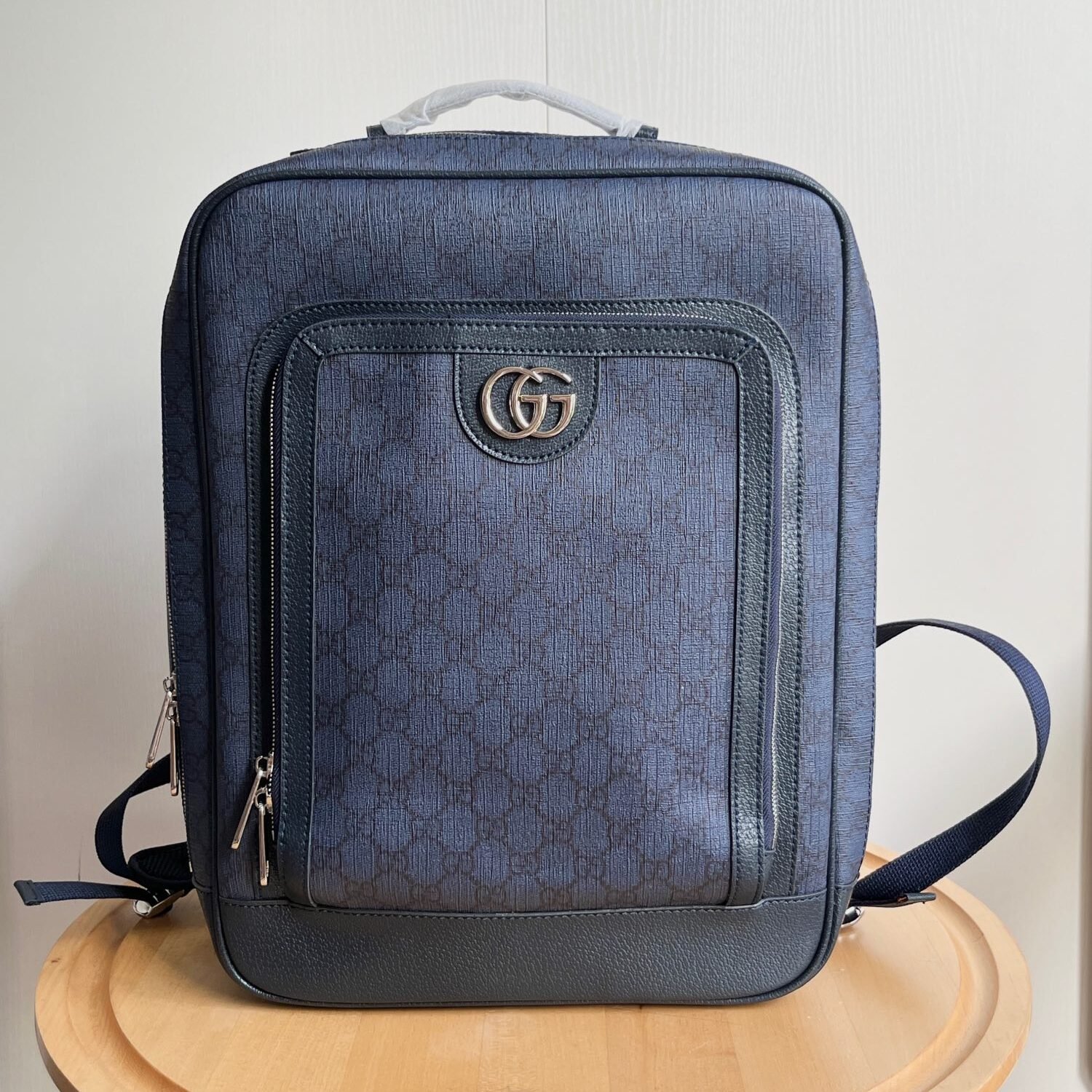 Model: 745718 Size: 30x40x14cm Backpacks have always been an indispensable part of the G house world, available in various shapes and sizes for different preferences. As a member of the ever-expanding Ophidia series, it features textured leather trim. It is adorned with inlaid red and green web stripes, a finely crafted palladium-tone Double G hardware, and a front pocket. Interior: padded laptop compartment and a zip pocket; Exterior: front zip pocket, handle (3 cm high)