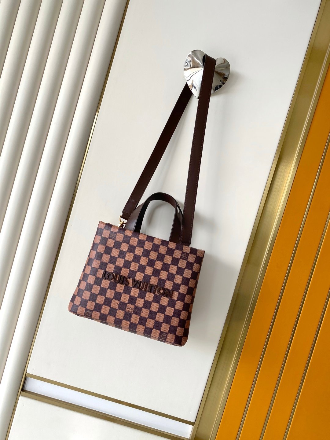 PHARRELL and NIGO collection’s collaborative series, top-quality original edition. This Medium Shopper handbag draws inspiration from the Louis Vuitton shopping bag, crafted in soft calf leather with Louis Vuitton and Maison Fondée En 1854 inscriptions, featuring a top handle and detachable shoulder strap. 25x19x11 • Calf leather • Calf leather trim • Fabric lining • Metal hardware • Musketon closure • Main compartment • Zipper pocket • Double patch pockets • Handles: double top handles