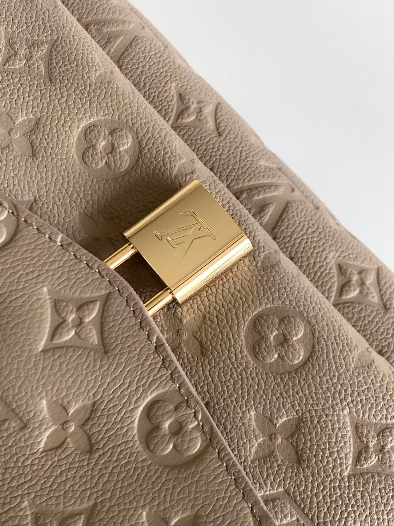 M14973 The LOUIS VUITTON Anytime Flap Bag is made from Monogram Empreinte leather and continues the design elements of the Anytime Shopper series, effortlessly creating a stylish look suitable for day and night. The side buckle cleverly expands the space for storing daily essentials. The striking sliding chain shoulder strap allows for versatile wear, and the LV padlock adds another signature touch.