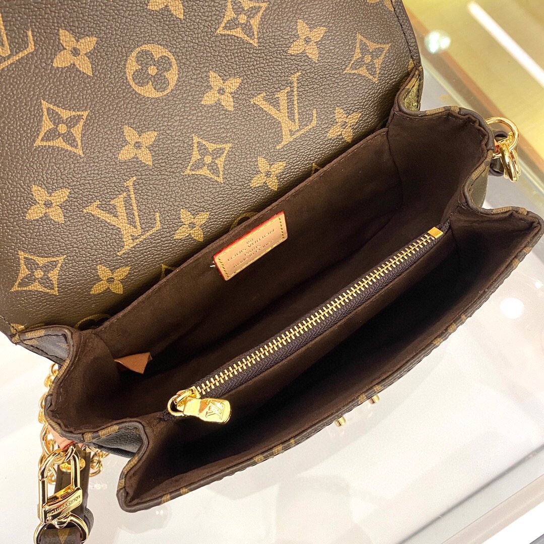M46279 Messenger Bag in Small Size. The East West Métis handbag features a stylish shoulder-bag design, full of trendy appeal. The compact body is made from the brand’s Monogram canvas and is equipped with a chic S-lock clasp and a fashionable top handle, with a polished, glossy surface. It is versatile and spacious. The detachable long shoulder strap allows for shoulder or crossbody wear. A perfect companion for daily outings. Dimensions: 21.5 x 6 x 13.5 cm.