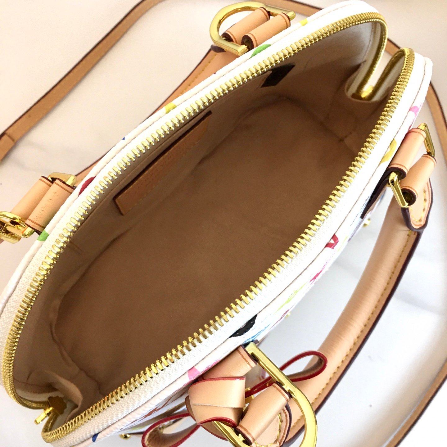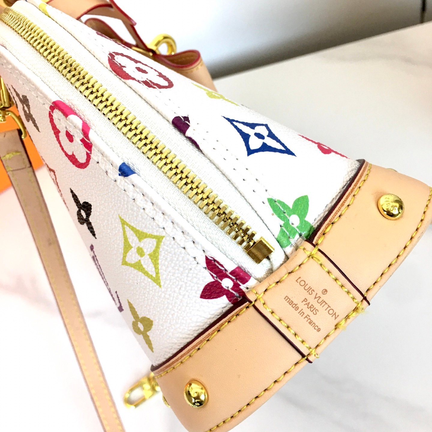 村上隆、ルイ・ヴィトンの象徴的なハンドバッグの中で最も構造的なもののひとつ、m53152。そのプロトタイプはガストン・ヴィトンによってデザインされた作品で、パリの 2 つの隣接するファッショナブルな地区を結ぶアルマ橋にちなんで名付けられました。シグネチャーモノグラムキャンバスがクラシックな雰囲気を与えます。寸法: 25 x 19 x 12 cm (長さ x 高さ x 幅)