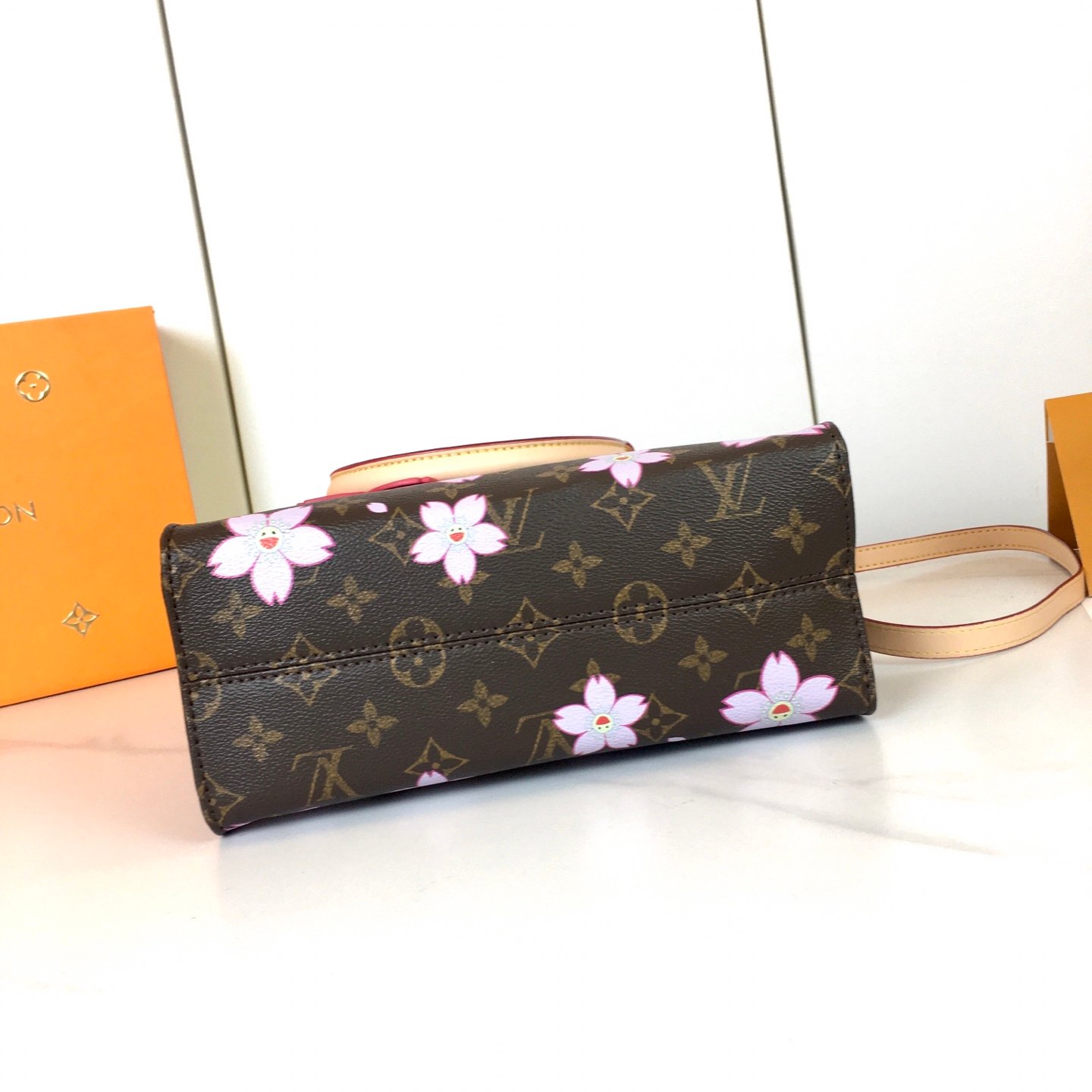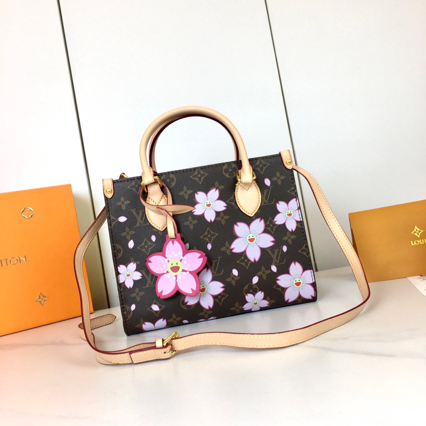 【OnTheGo 小号手袋】 m13269 樱花/村上隆 本款 OnTheGo jh小号手袋出自路易威登 x 村上隆复刻系列,以明丽 Cherry Blossom 图案焕新经典设计。Monogram 涂层帆布烘托象征新生的花卉图案,牛皮革饰边和耀目金属件彰显考究格调,可拆卸 Cherry Blossom 装饰绽放灵动新意。 尺寸:19 x 11.5 x 25 厘米