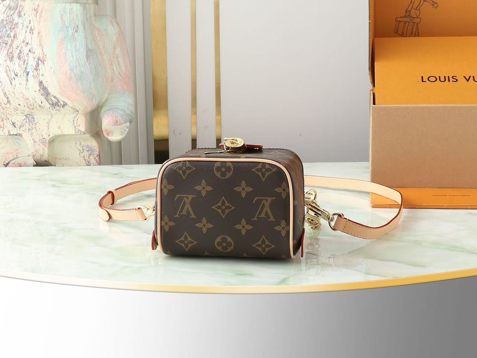 [Top Quality Original, Exclusive Real Photos] M47096 Monogram Chain Bag Series JUST IN CASE Handbag. The Just In Case handbag pays homage to the brand’s travel heritage, crafted with Monogram Tsd Hl canvas and cowhide leather trimming to create a compact shape that can hold daily essentials such as a phone, keys, and cosmetics. The padlock and key pouch highlight classic details, while the leather-woven chain and leather shoulder strap are both detachable, allowing flexible modern carrying options. Size: 13 x 14 x 11.5 cm.