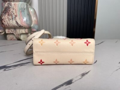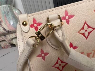 【顶级原单 独家实拍】M47115草莓牛奶 M46993本款 OnTheGo BB 手袋出自 Sunrise Aquarelle 系列,为缤纷 Monogram Empreinte 皮革融入水彩效果 LV 字母和 Monogram 花卉,细腻描绘旭日初升之景。丝印光泽宛若晶莹晨露,辊压皮革手柄和可拆卸并调节的肩带实现多种背携方式。尺寸18.0 x 15.0 x 8.5 厘米 (长 x 高 x 宽)