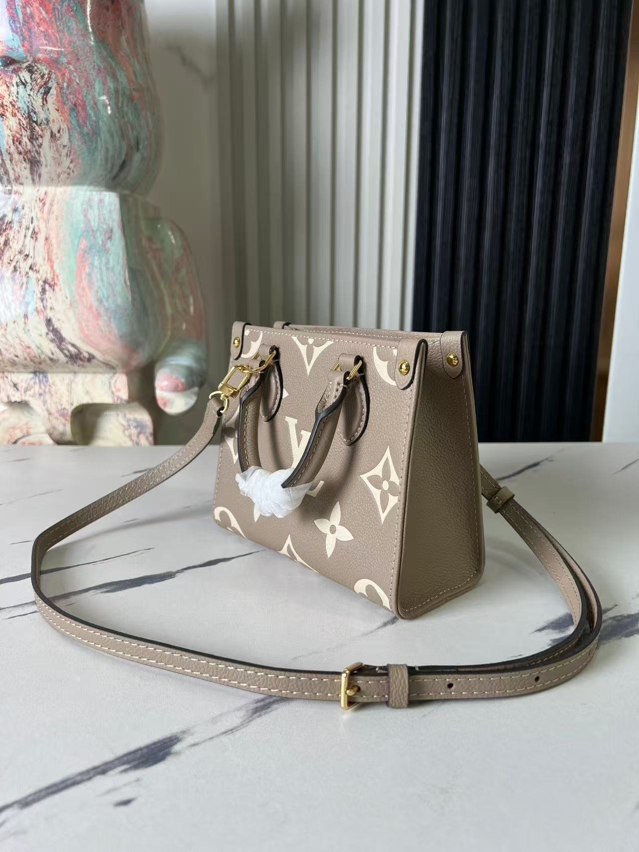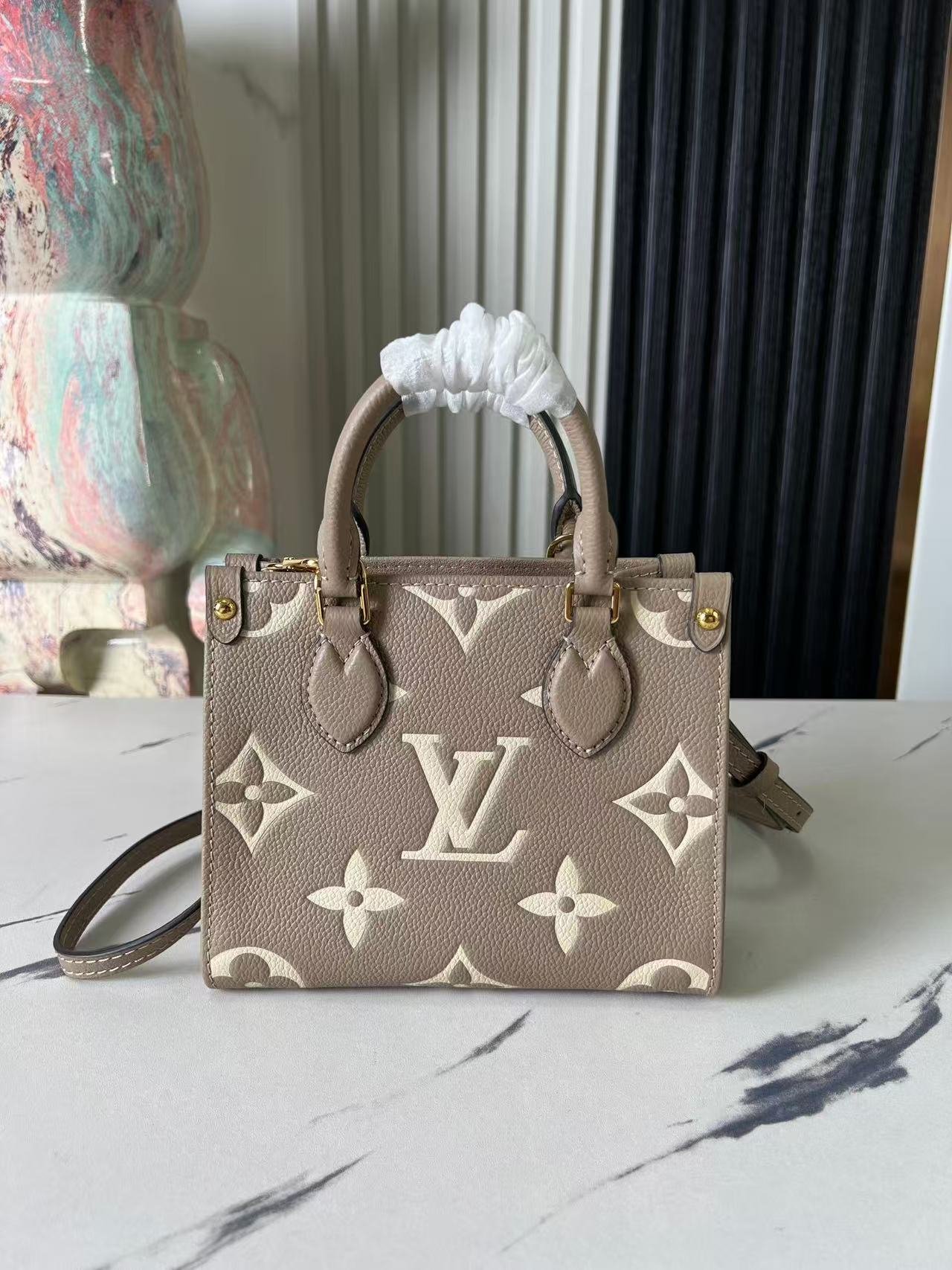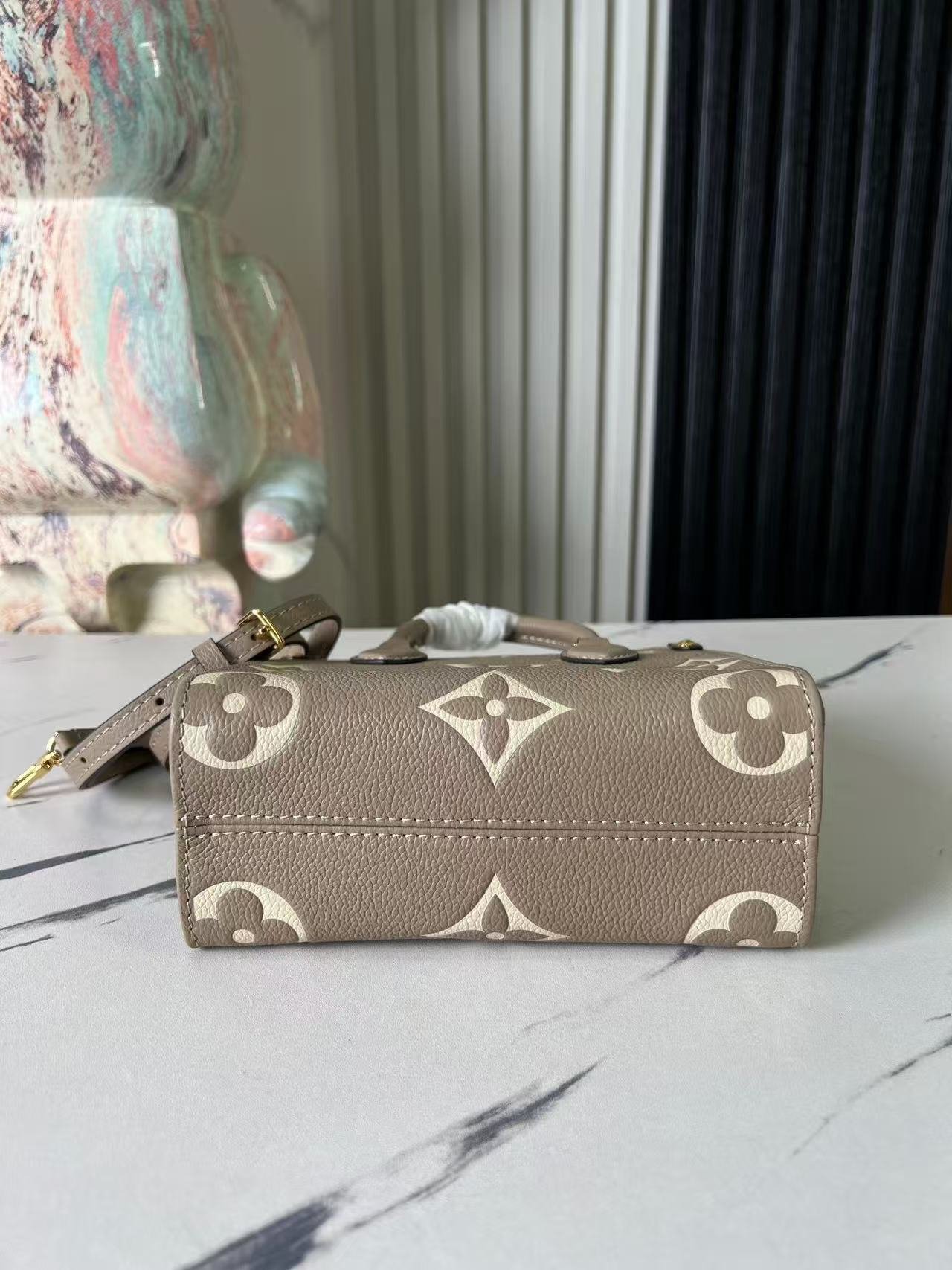 [Top Original Exclusive Real Shot] M47054 Gray Silk-Printed Full Leather M46993 Square Bag Series. This OnTheGo BB handbag features Monogram Empreinte leather embossed with the Monogram pattern, showcasing meticulous craftsmanship with chic handle attachments and studded leather corner details. Its compact shape can hold a smartphone and a short wallet, and the detachable, adjustable shoulder strap allows convenient shoulder carrying. 18 x 15 x 8.5 cm (Length x Height x Width).