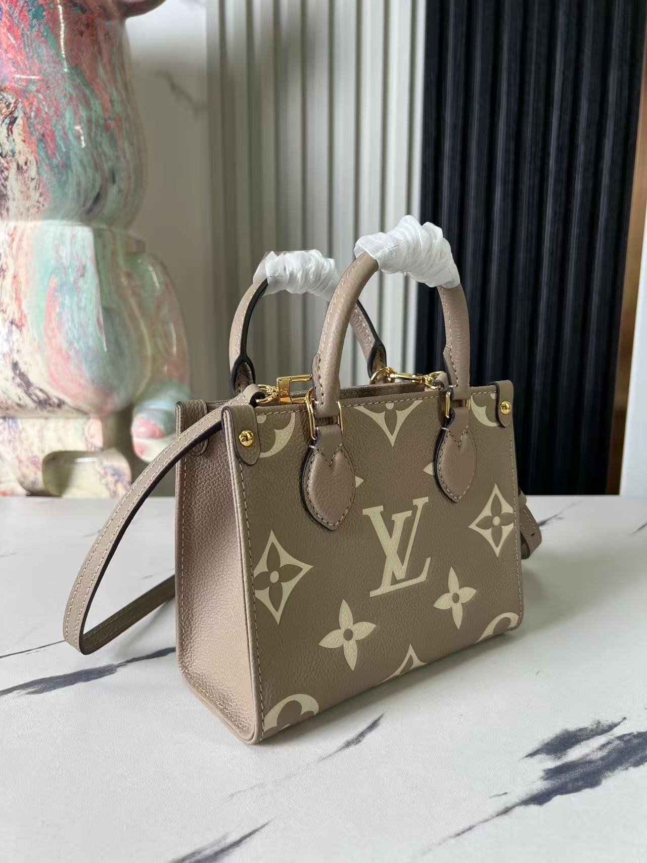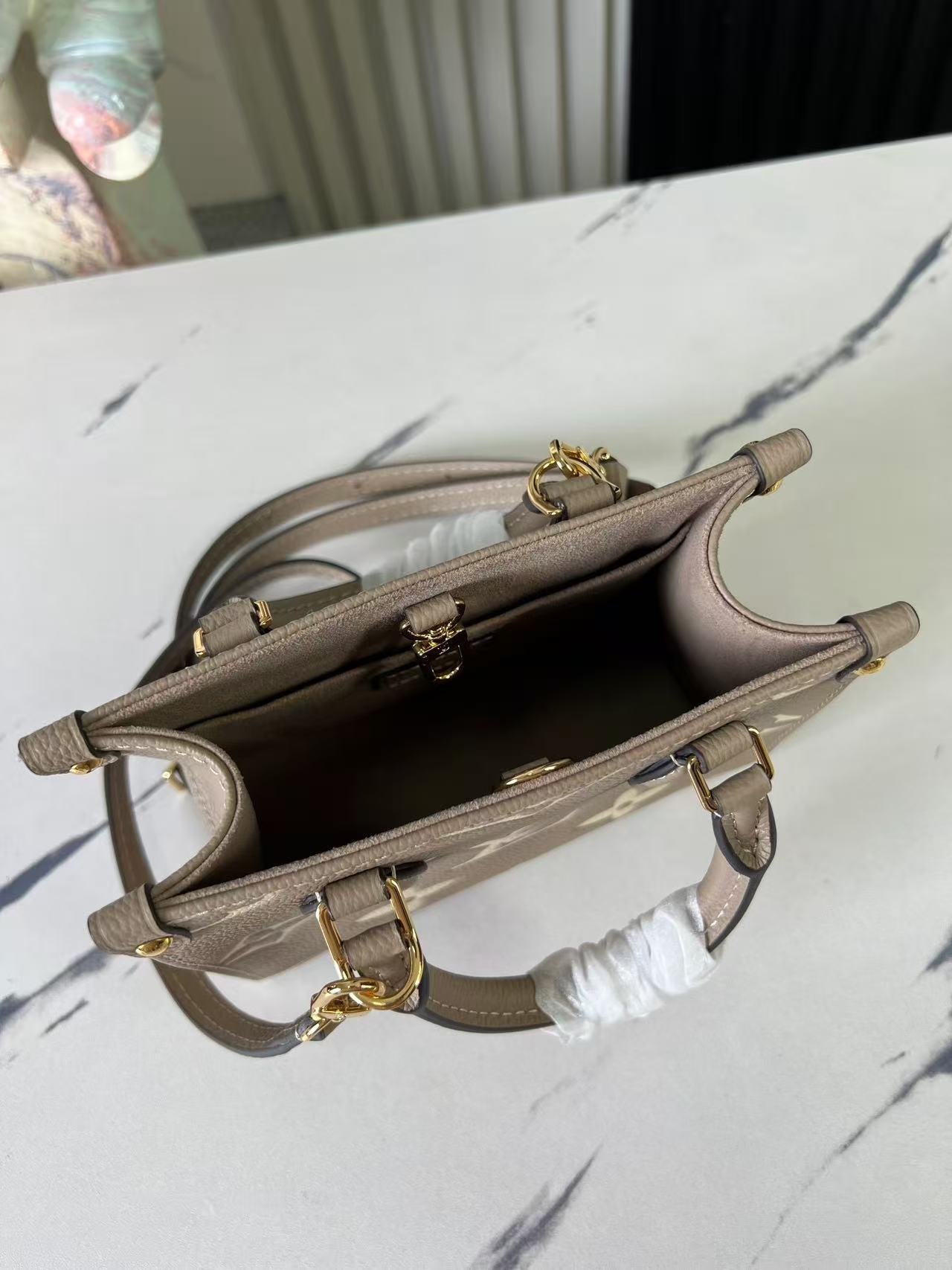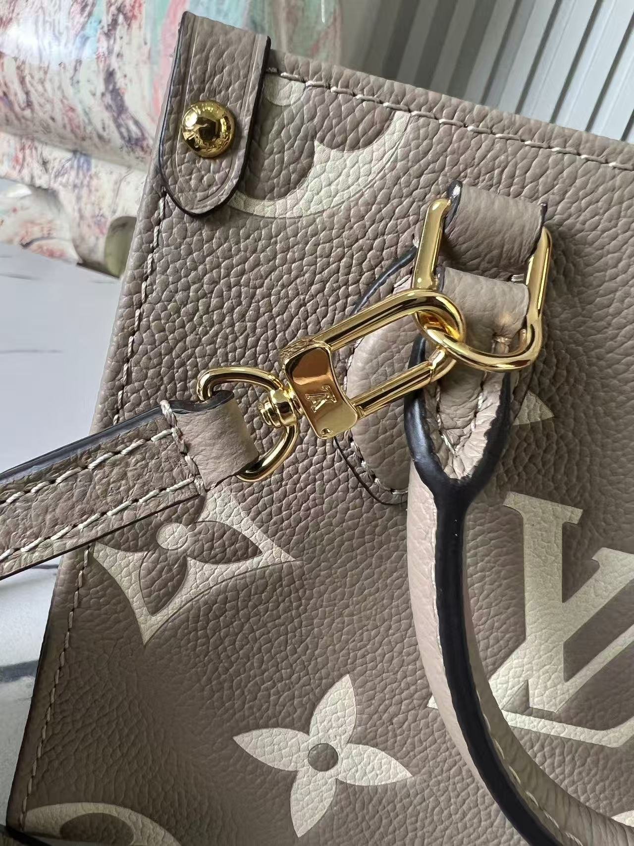 [Top Original Exclusive Real Shot] M47054 Gray Silk-Printed Full Leather M46993 Square Bag Series. This OnTheGo BB handbag features Monogram Empreinte leather embossed with the Monogram pattern, showcasing meticulous craftsmanship with chic handle attachments and studded leather corner details. Its compact shape can hold a smartphone and a short wallet, and the detachable, adjustable shoulder strap allows convenient shoulder carrying. 18 x 15 x 8.5 cm (Length x Height x Width).
