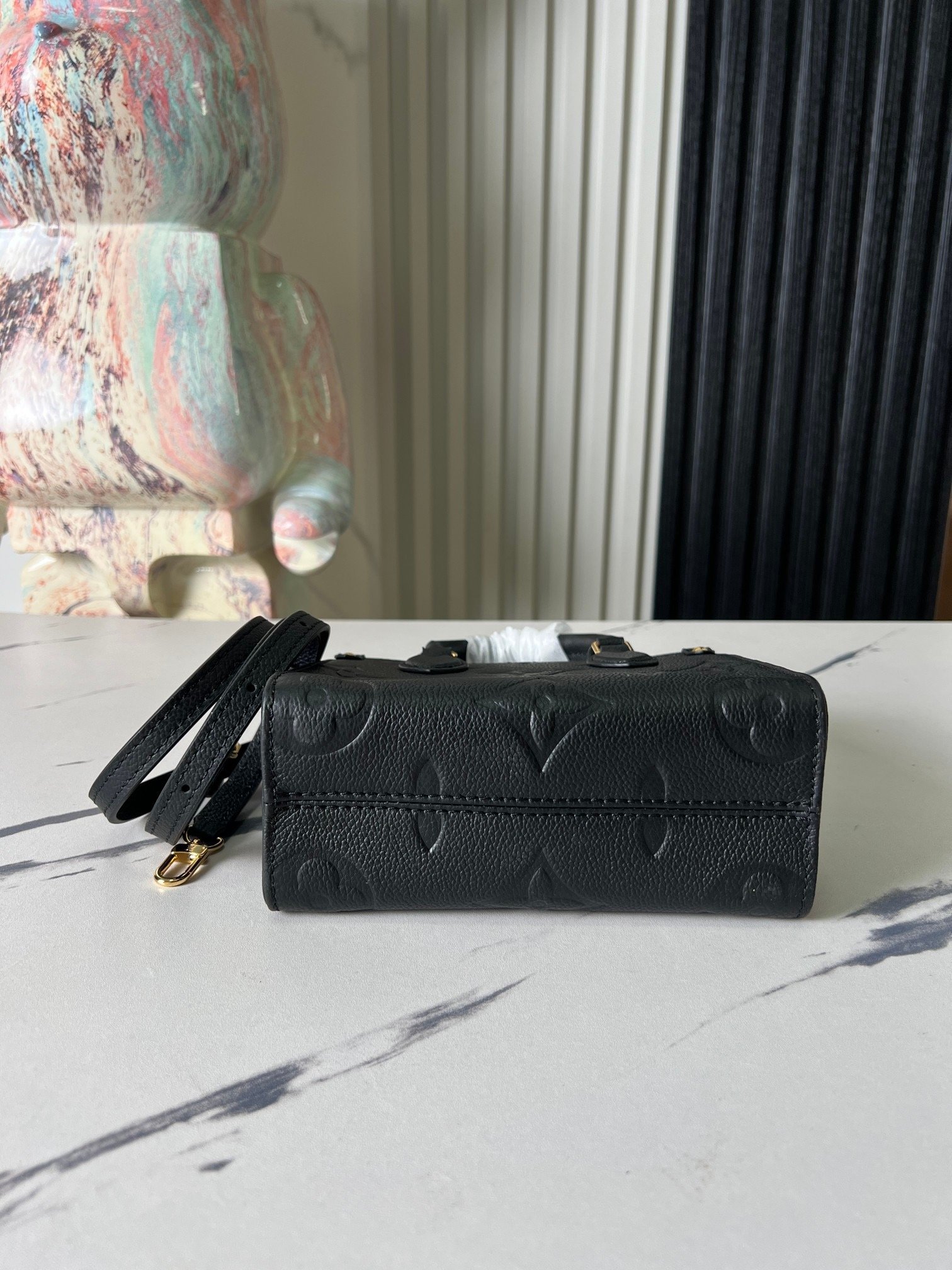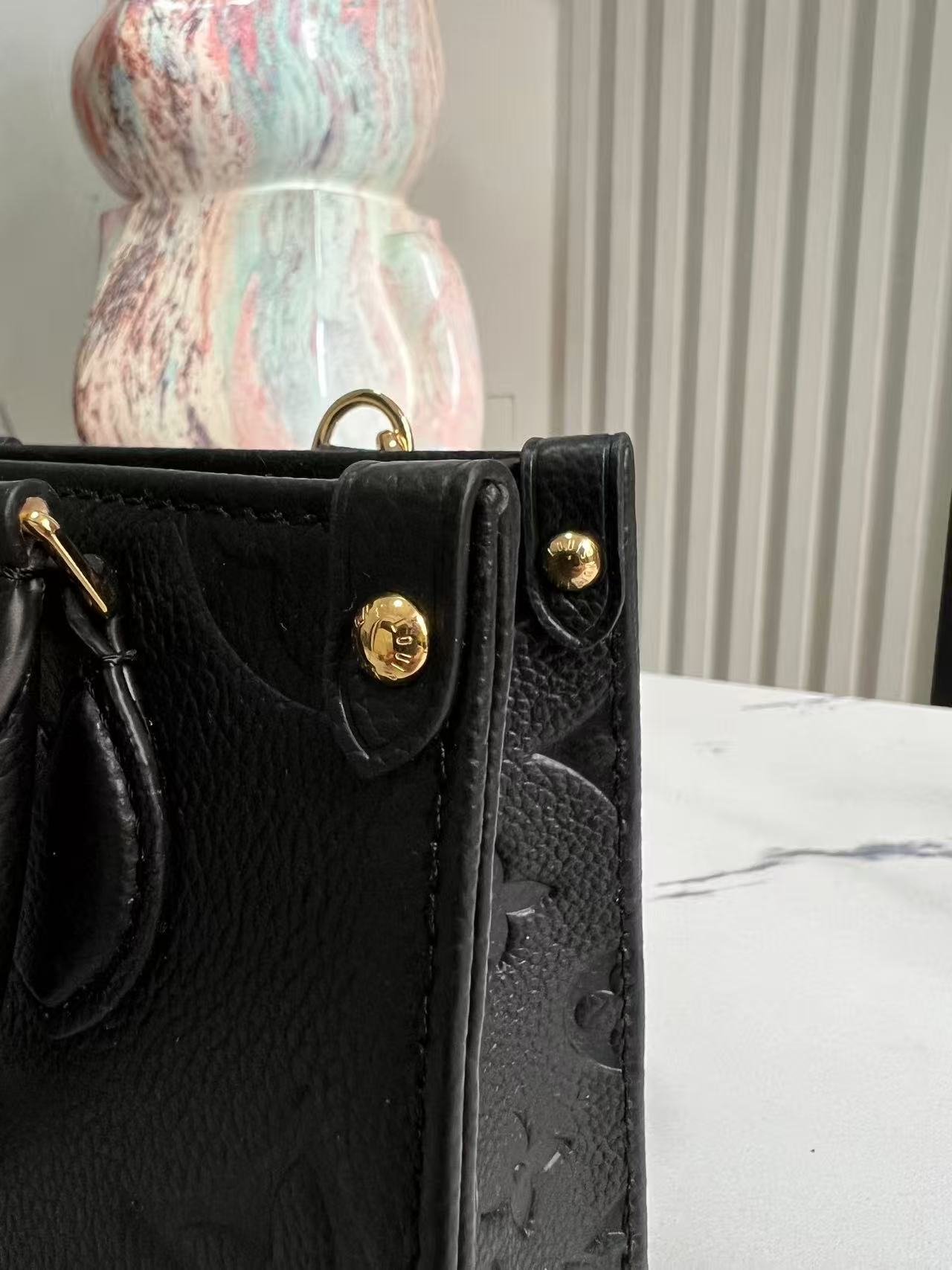 [Top Quality Original, Exclusive Real Shots] M46993 Black Full-Grain Embossed Leather Square Bag Series. This OnTheGo BB handbag features Monogram Empreinte leather embossed with the Monogram pattern, showcasing craftsmanship details with chic handle attachments and studded leather corners. Its compact design can hold a smartphone and a small wallet, and the detachable, adjustable shoulder strap allows for convenient shoulder carrying. 18 x 15 x 8.5 cm (Length x Height x Width)