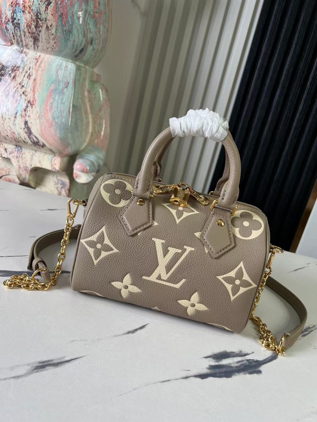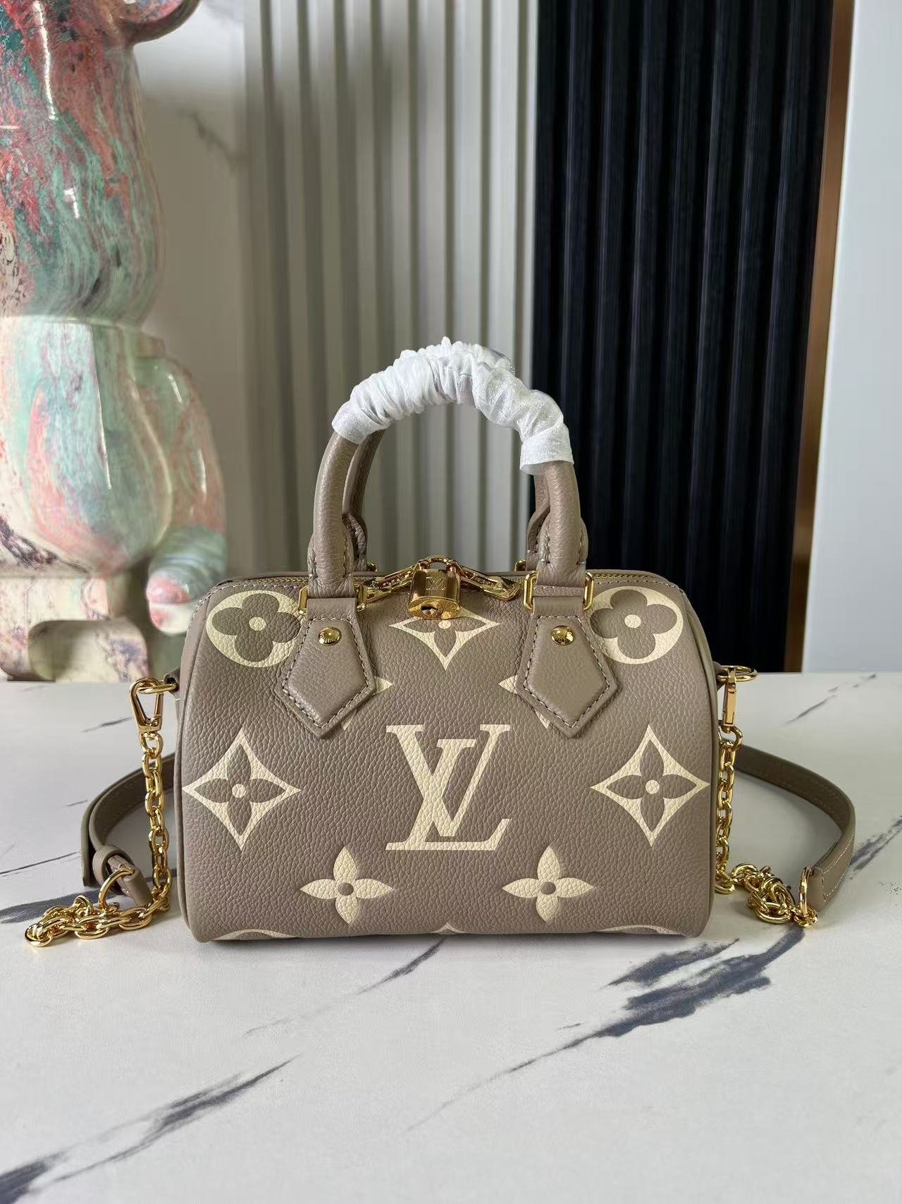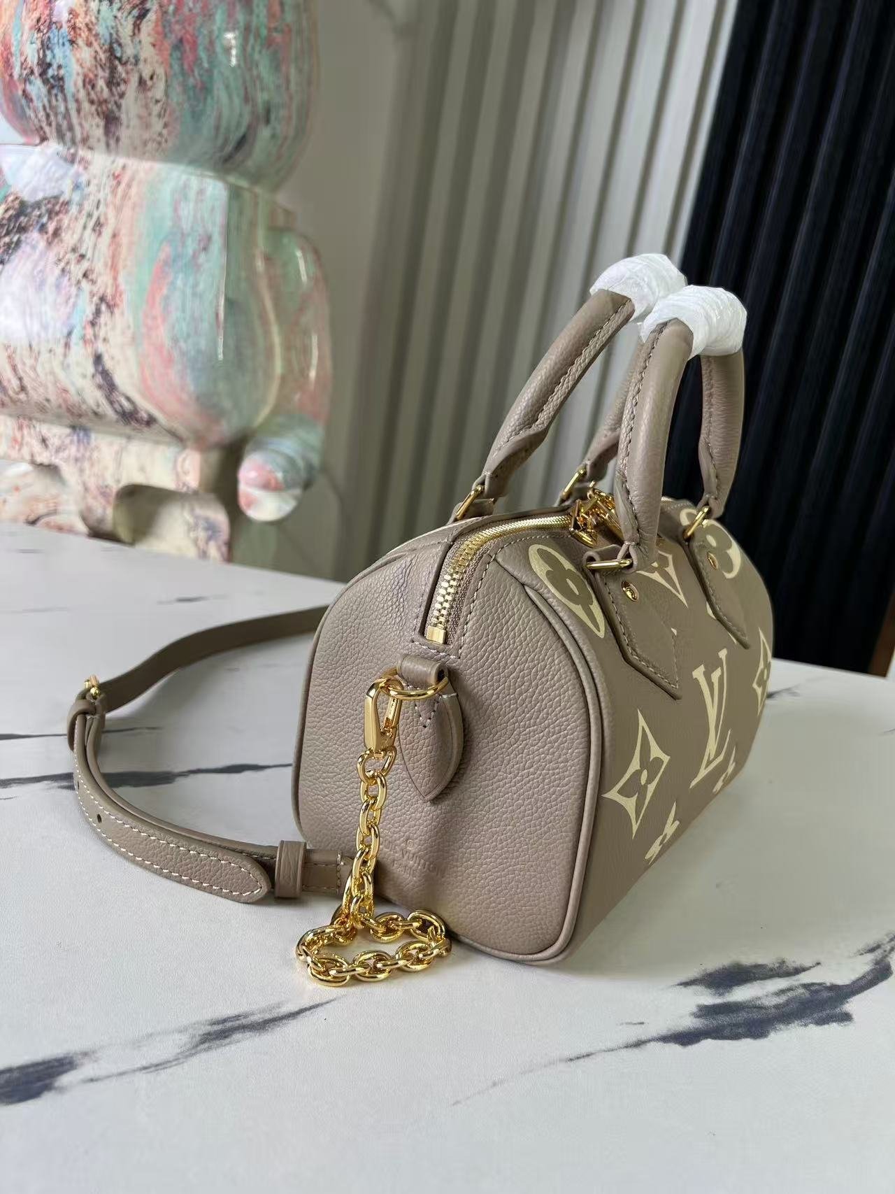 [Top-Tier Original, Exclusive Real Shots] M46575 Elephant Grey Full Leather Speedy Series Bandoulière 20 Handbag, made from Monogram Empreinte leather, adorned with the signature Monogram floral pattern. This Speedy Bandoulière 20 Handbag M46397 is a modern classic. Inspired by the 1930s Speedy luggage series, it recreates the original shape and hinged handles. Comes with a leather and metal chain strap for shoulder or crossbody wear. Dimensions: 20.5 x 13.5 x 12 cm.