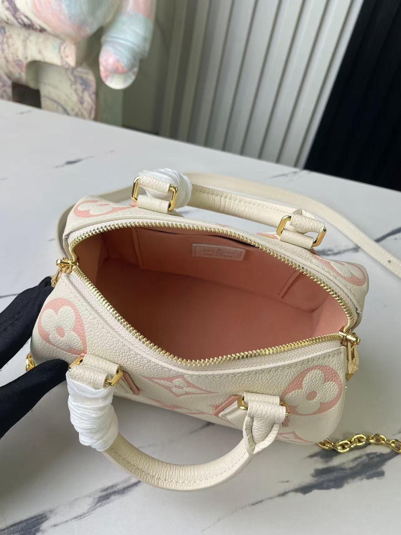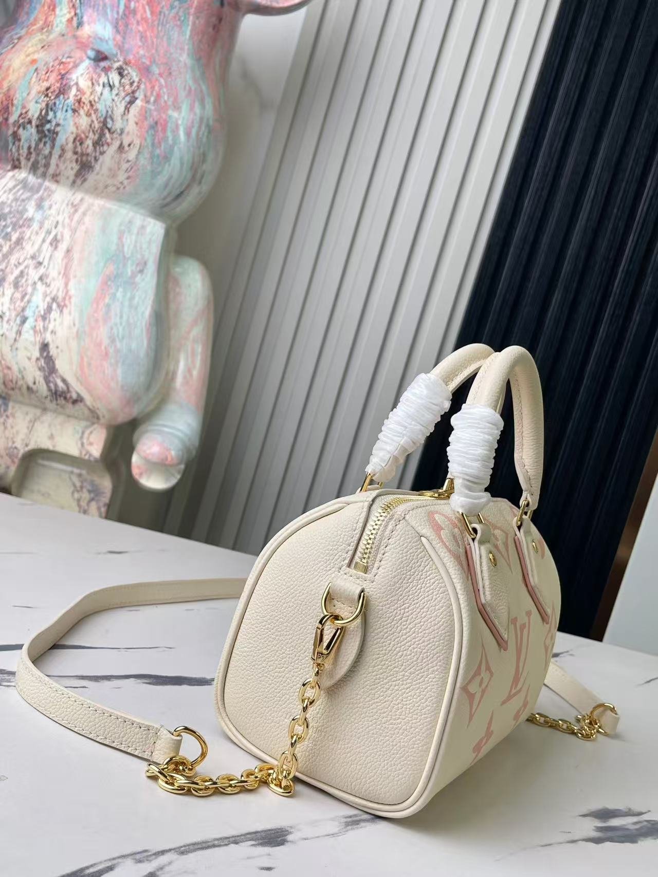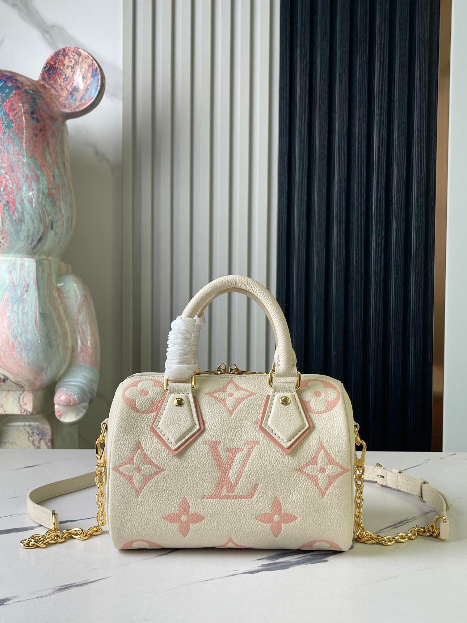 [Top Original Single, Exclusive Real Shots] M46875 Beige Print Pink M46397 Full Leather Speedy Pillow Bag Series. This Speedy Bandoulière 20 handbag comes from the brand-new Dégradé collection. The Monogram Empreinte embossed leather body features vibrant colors, adding a splash of brightness to your seasonal outfits. The rolled Toron handles and adjustable shoulder strap allow for flexible elbow-carry, shoulder-carry, or crossbody wear, making it a perfect companion for urban life and summer gatherings. Dimensions: 20.5 x 13.5 x 12.0 cm (Length x Height x Width)