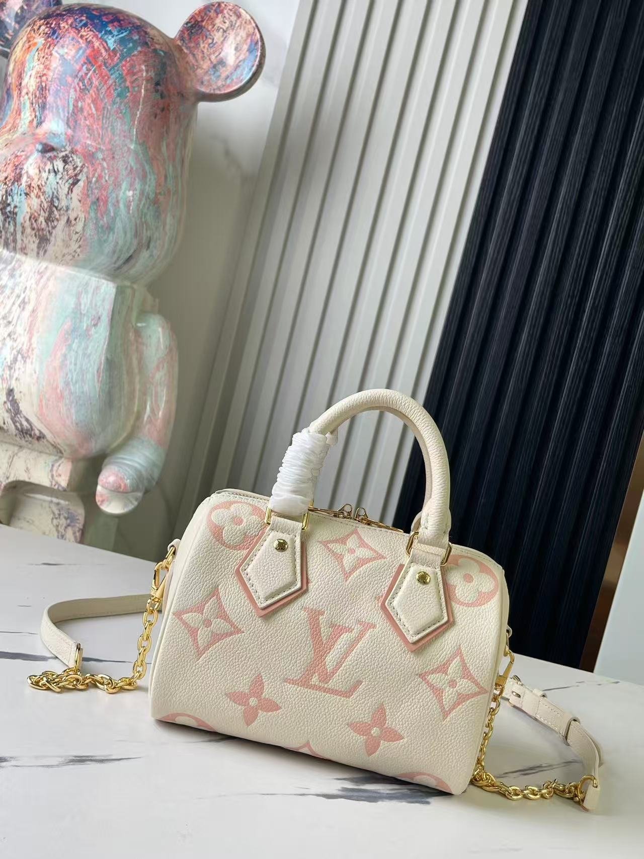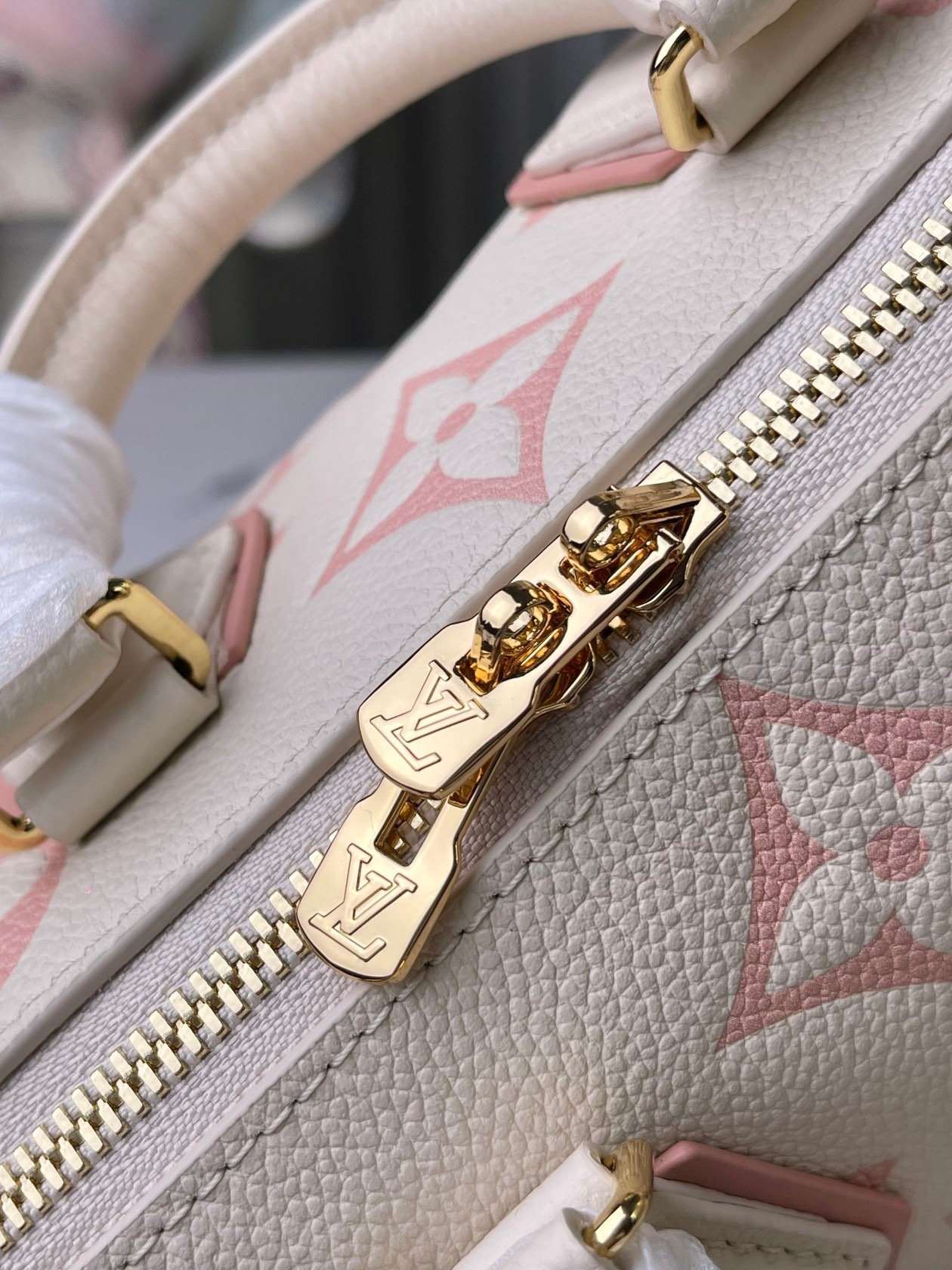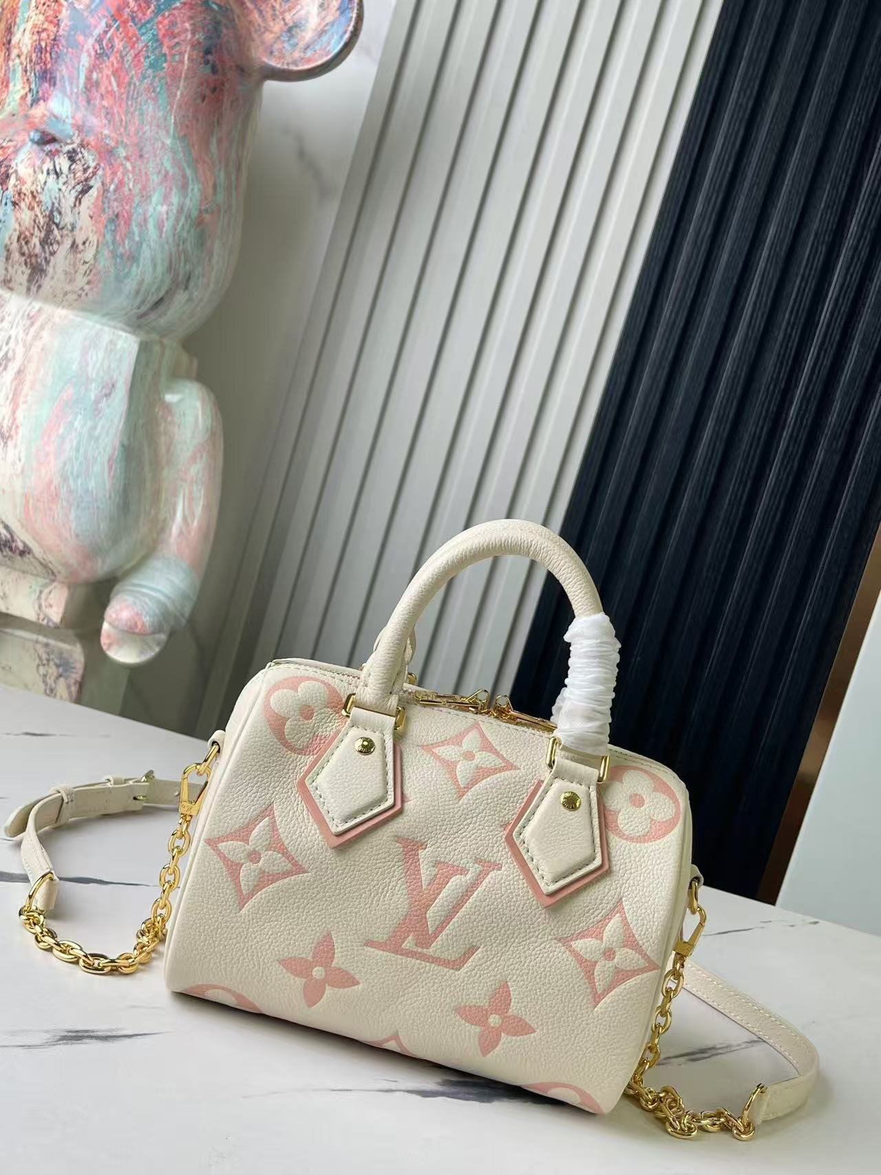 [Top Original Single, Exclusive Real Shots] M46875 Beige Print Pink M46397 Full Leather Speedy Pillow Bag Series. This Speedy Bandoulière 20 handbag comes from the brand-new Dégradé collection. The Monogram Empreinte embossed leather body features vibrant colors, adding a splash of brightness to your seasonal outfits. The rolled Toron handles and adjustable shoulder strap allow for flexible elbow-carry, shoulder-carry, or crossbody wear, making it a perfect companion for urban life and summer gatherings. Dimensions: 20.5 x 13.5 x 12.0 cm (Length x Height x Width)
