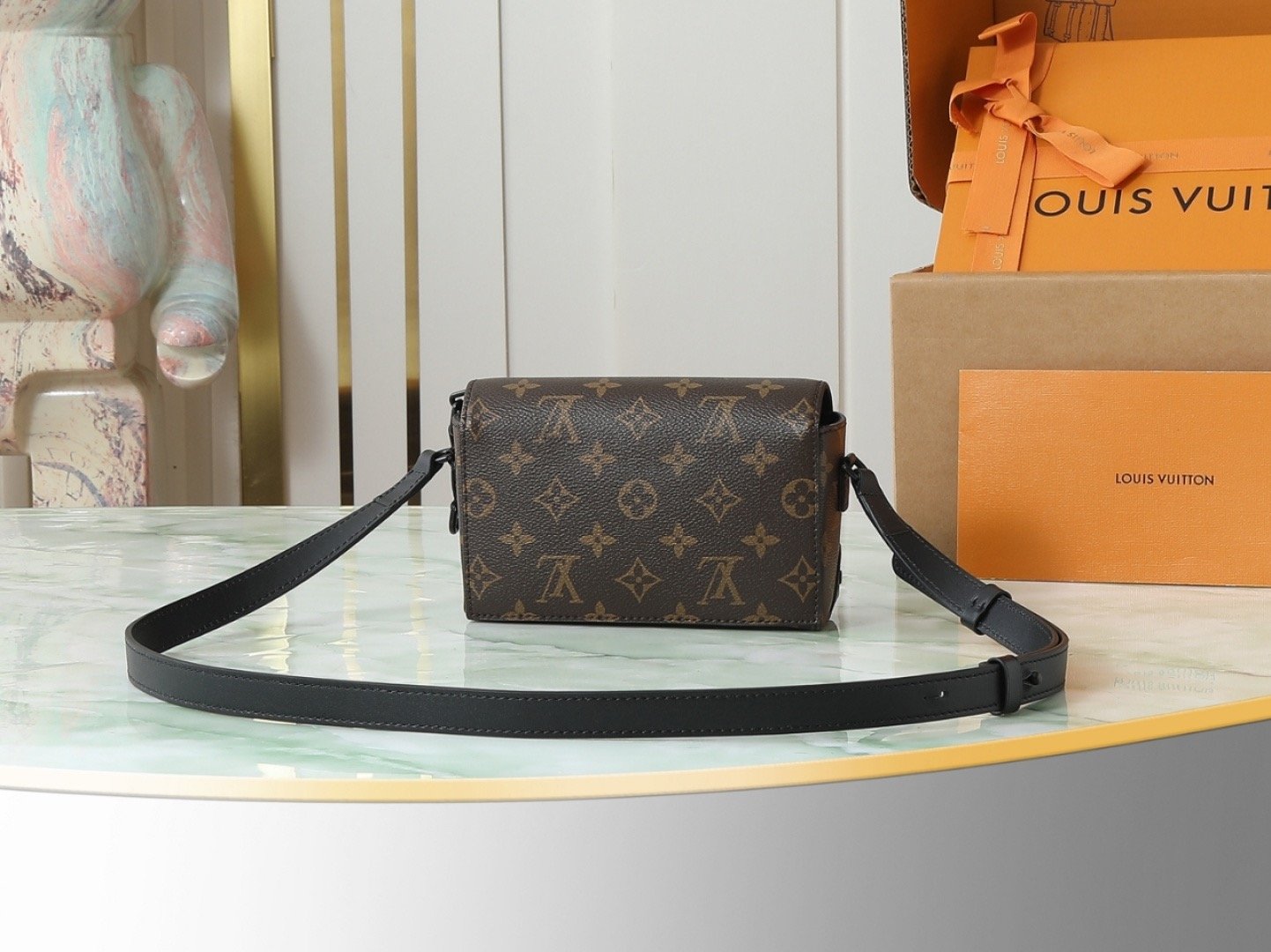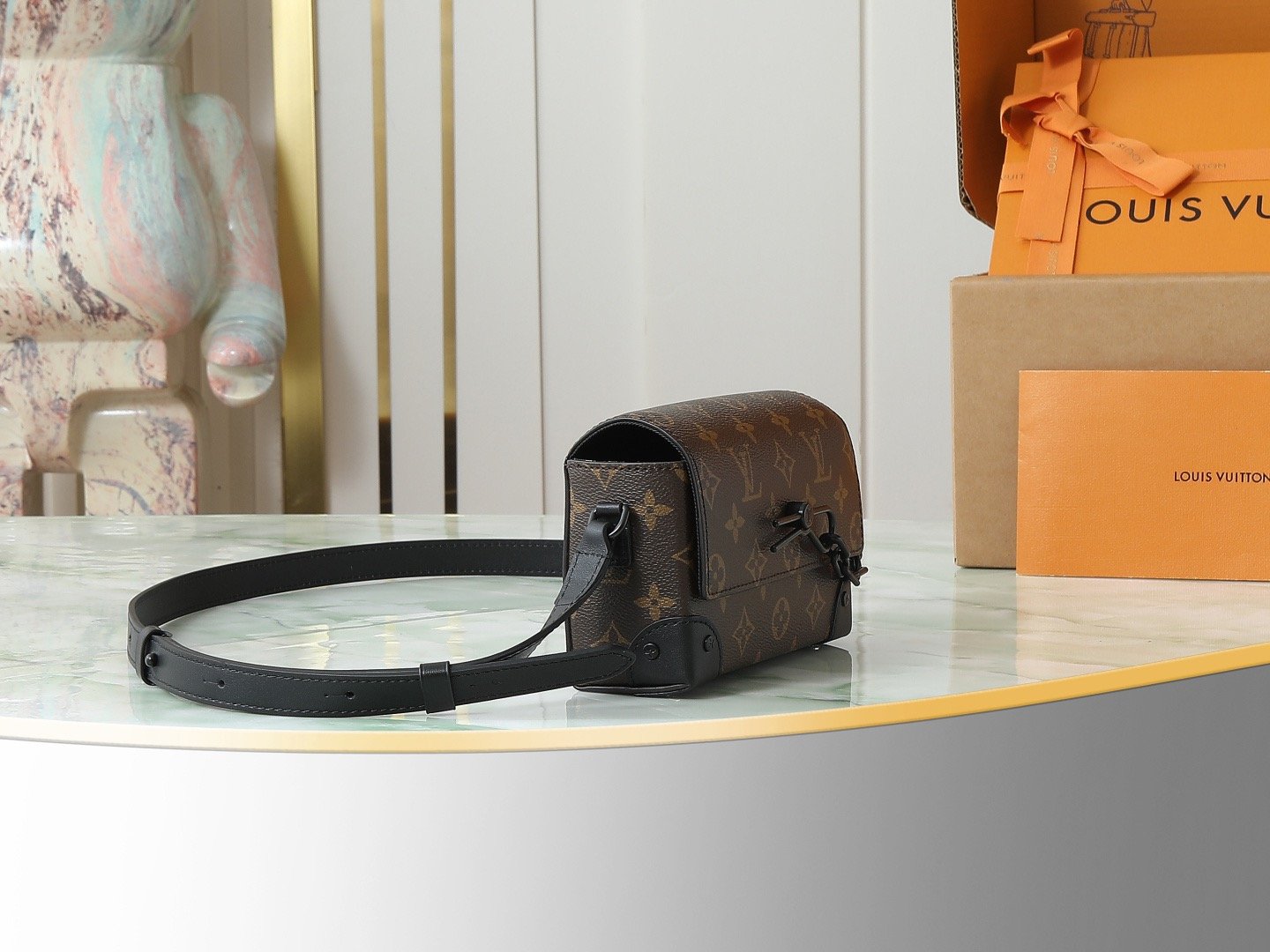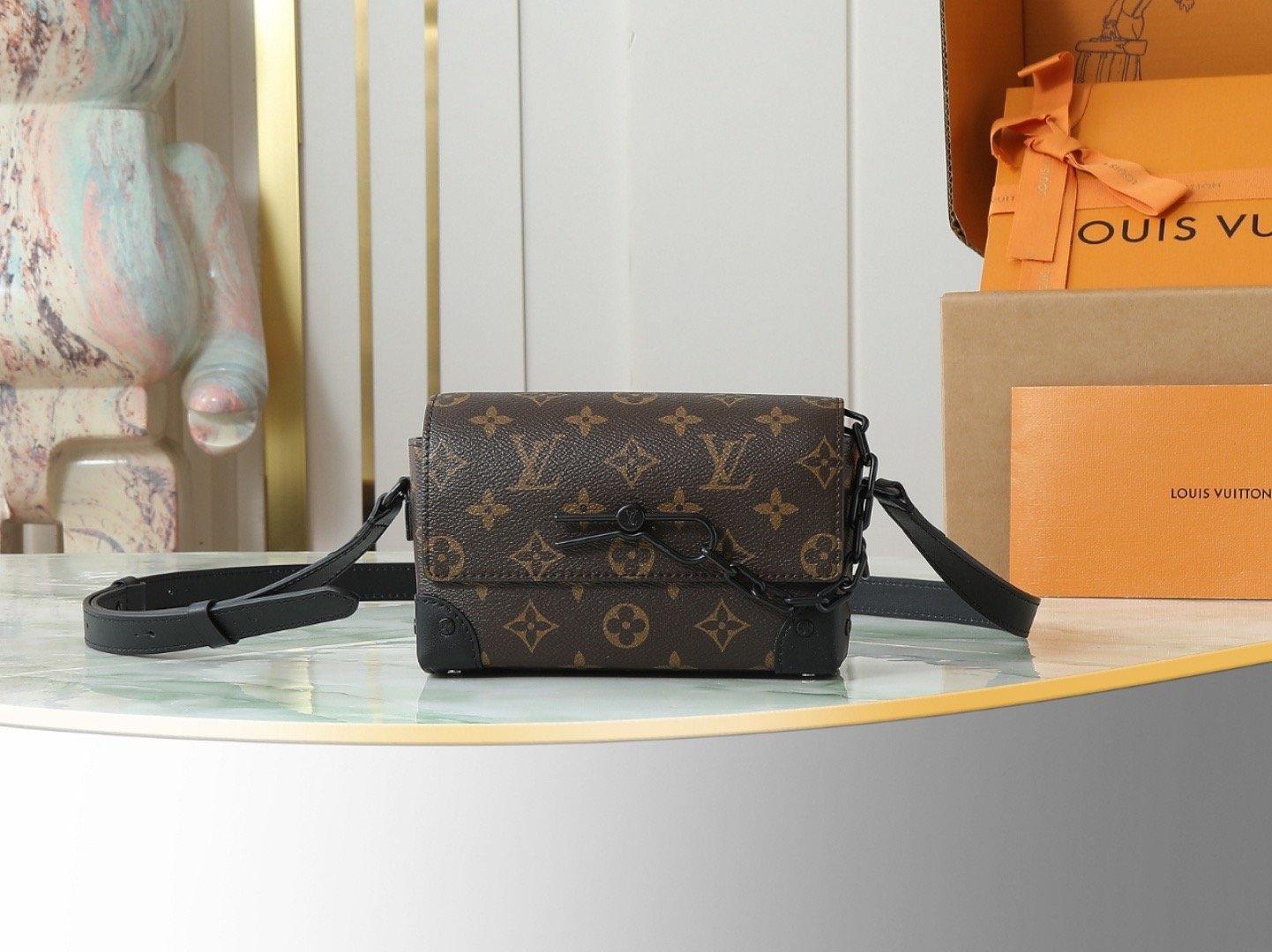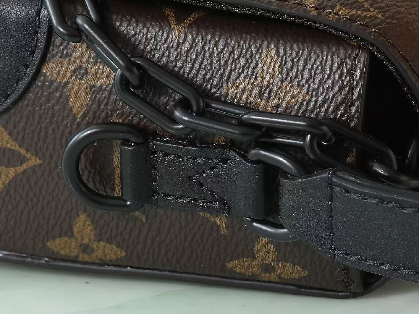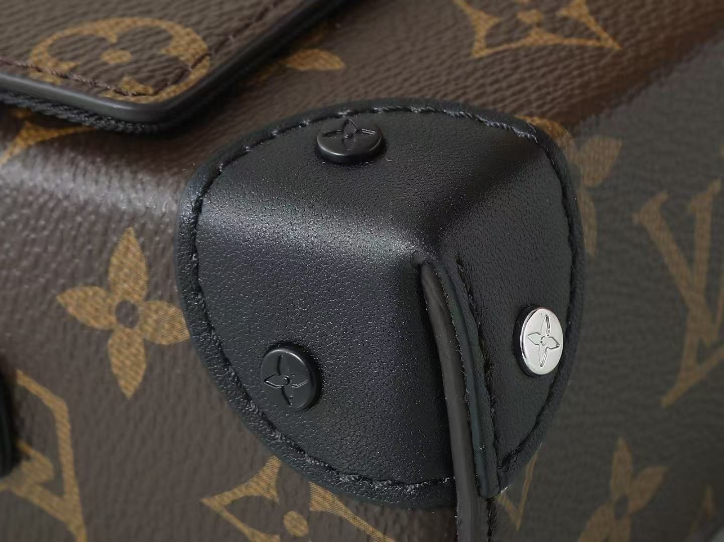 [Top Original Exclusive Real Shot] M83613 Monogram ‘LV’ Men’s Mini Messenger Bag Series. This Steamer Mini Handbag is crafted from Monogram Macassar canvas, featuring decorative chains and studs for a distinctive look. Reinforced corners reflect the brand’s traditional trunk-making heritage. The magnetic closure allows easy access to essentials, and the adjustable strap offers shoulder or crossbody wear. Dimensions: 18 x 11 x 6.5 cm (Length x Height x Width).